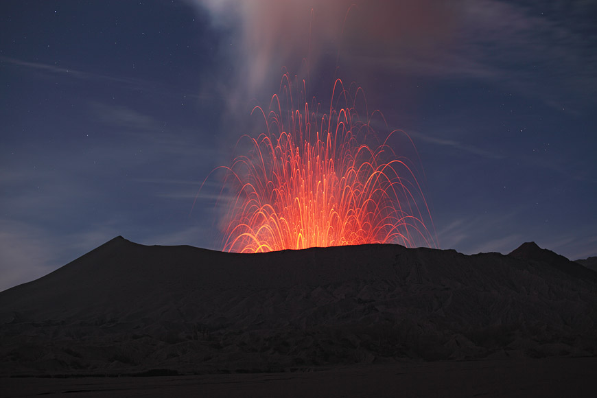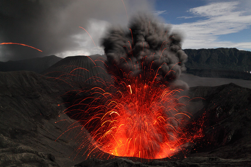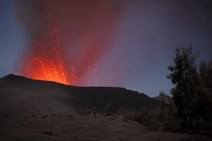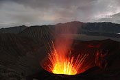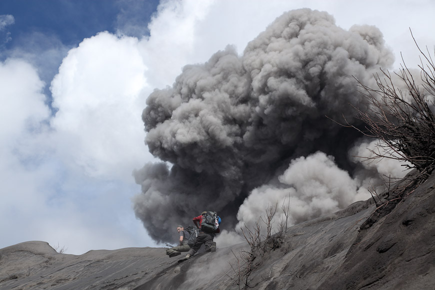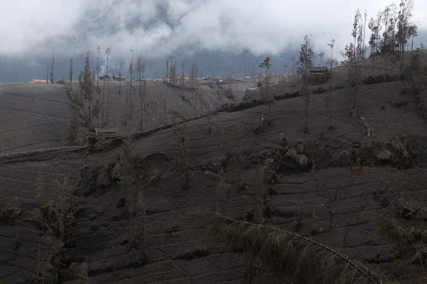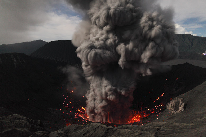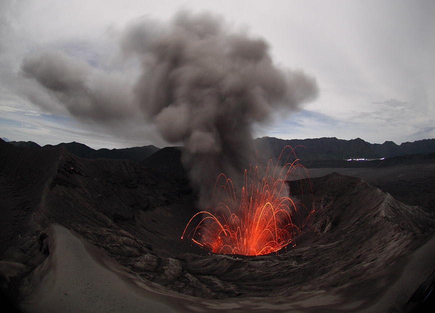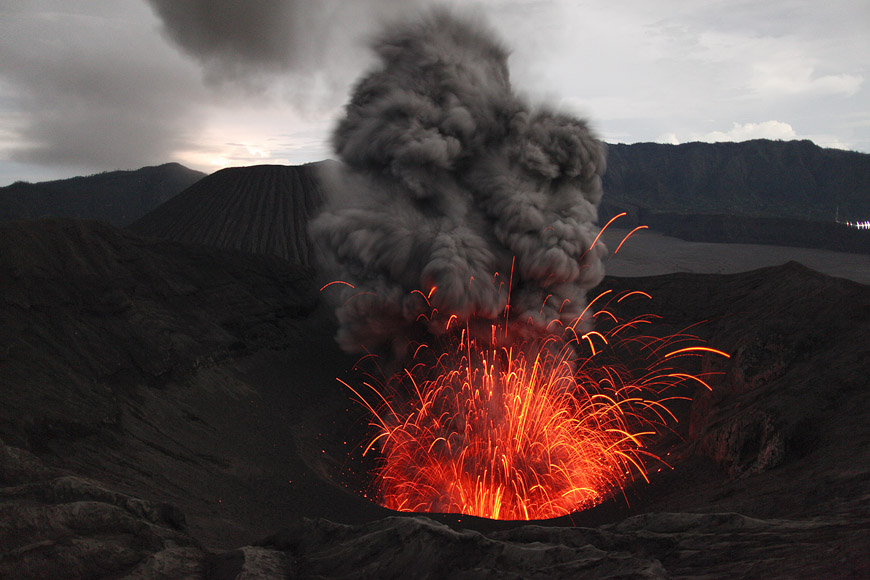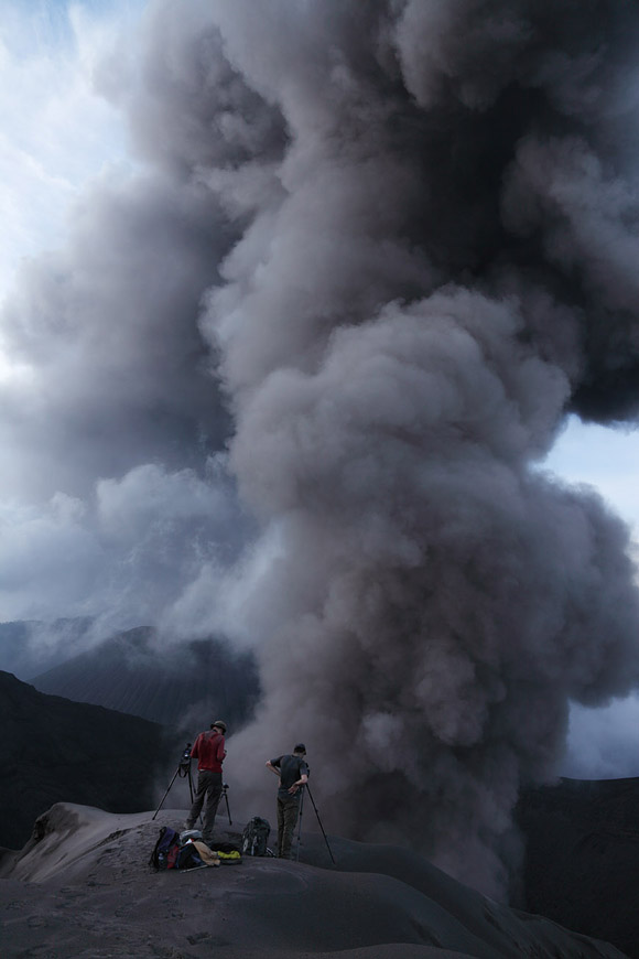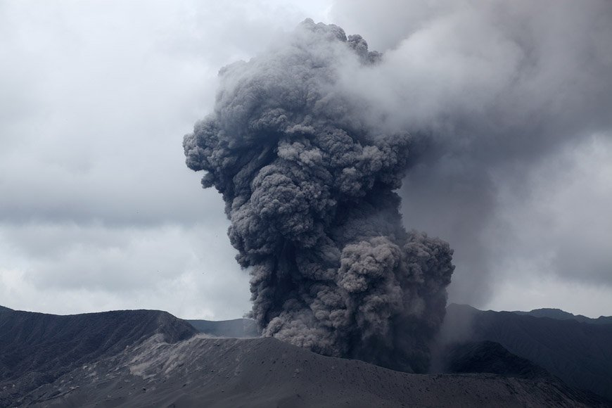 Bromo Temple below Mt. Batok (lower middle) gives scale