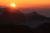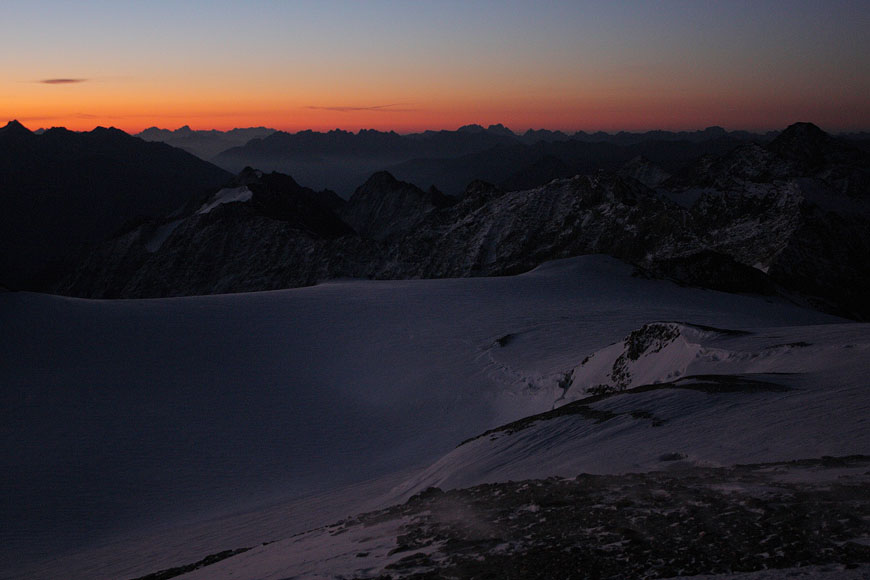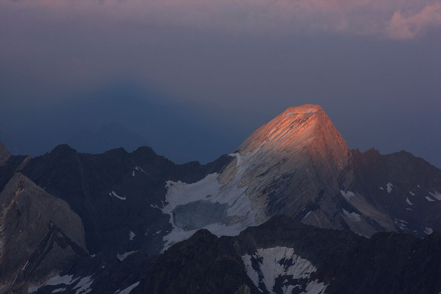 first sunlight on Similaun with earths shadow behind |