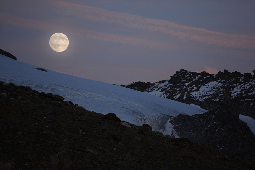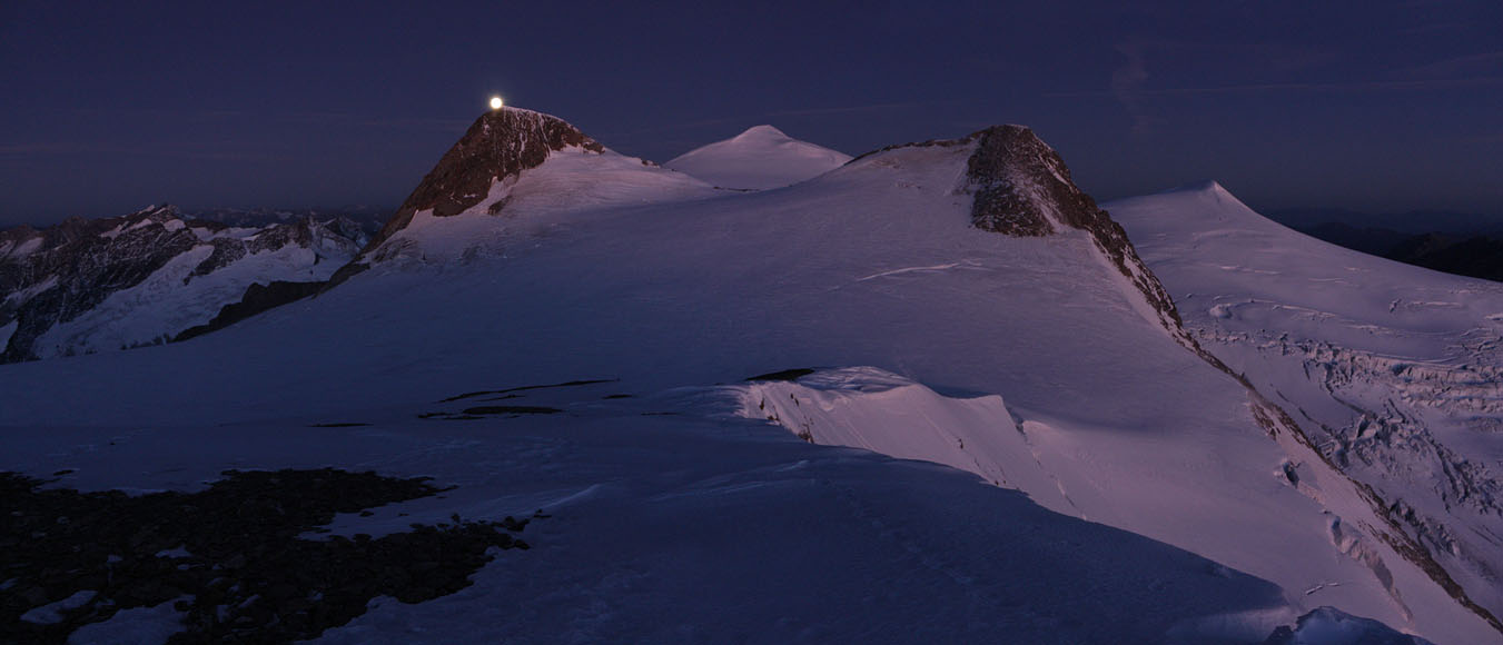Moonset behind Rainer Horn, Großvenediger and Schwarze Wand seen from Hoher Zaun |