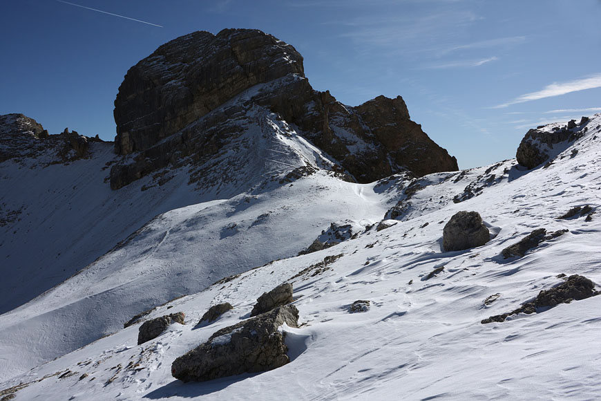 the new S-route meets the traditional Althaus route, Rötspitze behind |