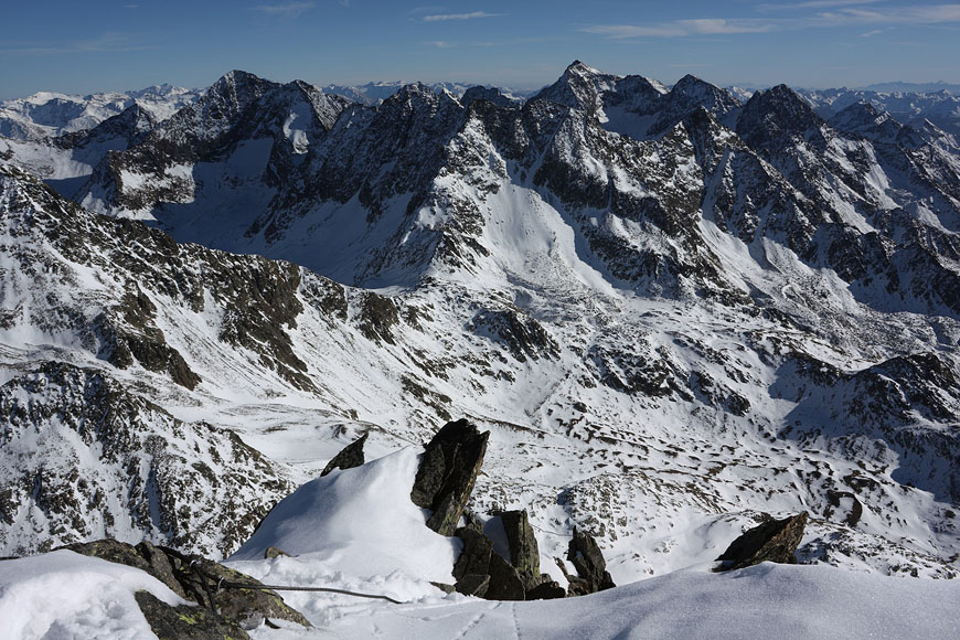 view from summit to east part of Schobergruppe, Petzeck behind |