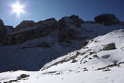 Day tour from Piösmes, Arzler Alm, 4,1h ascent via Totenferner and east-summit, easy, but very exposed climb (grade II) with steep terrain.