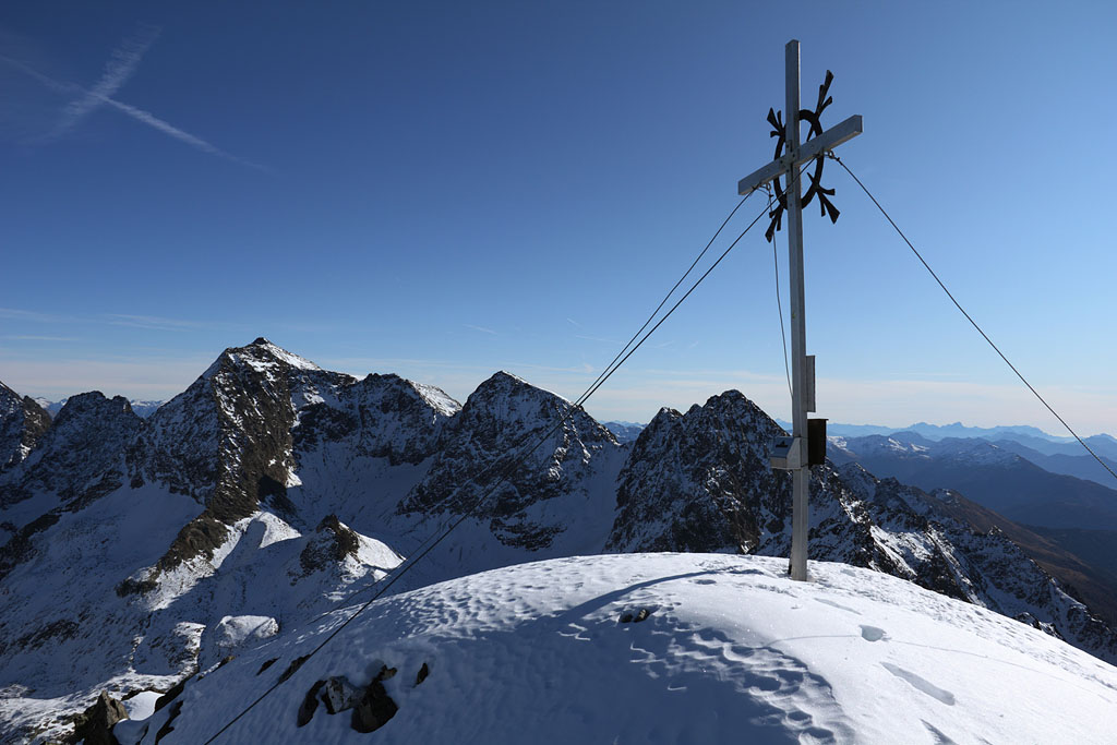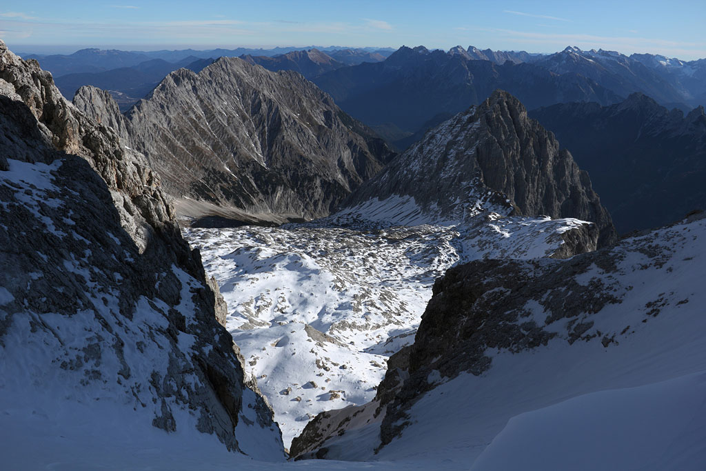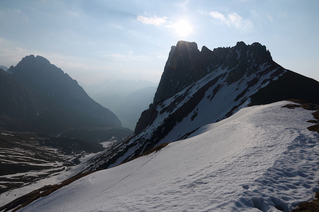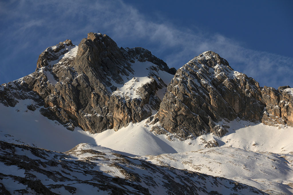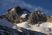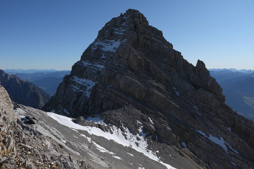 Day tour, ascent from Leutasch/Gaistal, easy climb (grade I-) but loose gravel and icy parts.