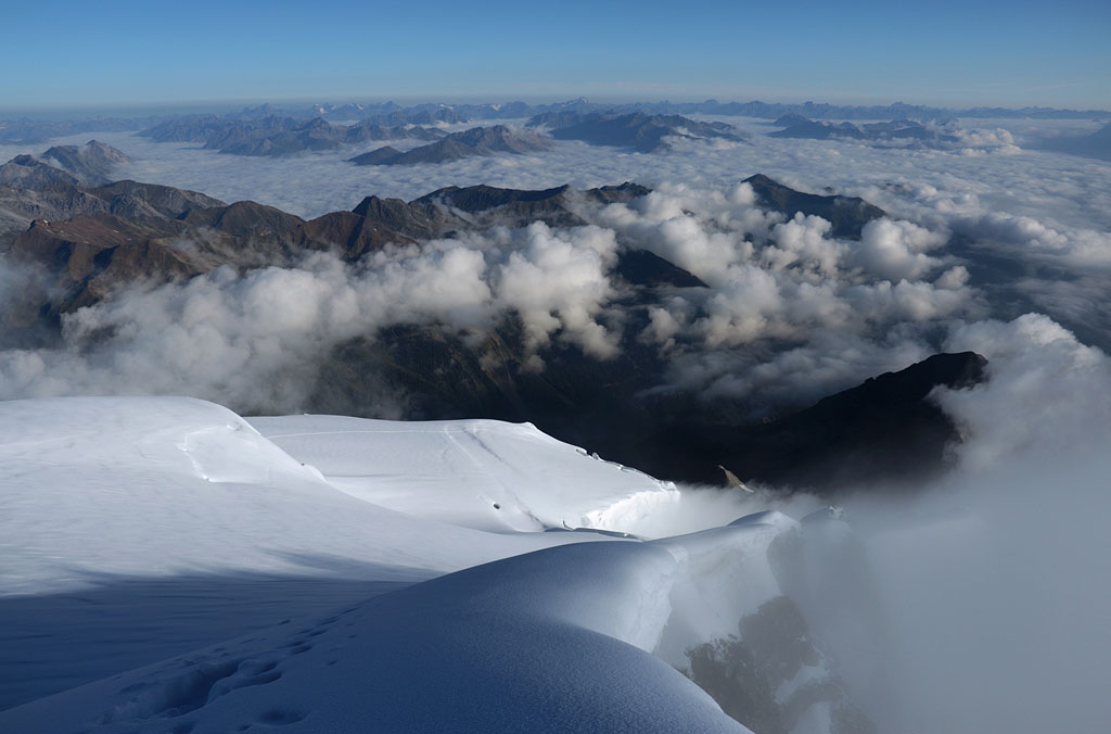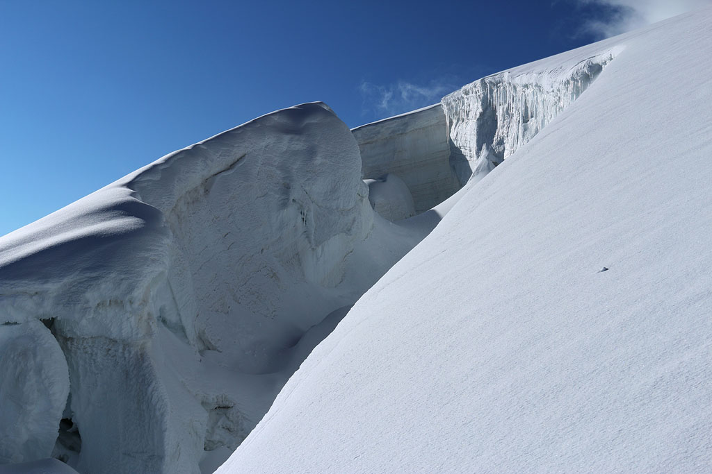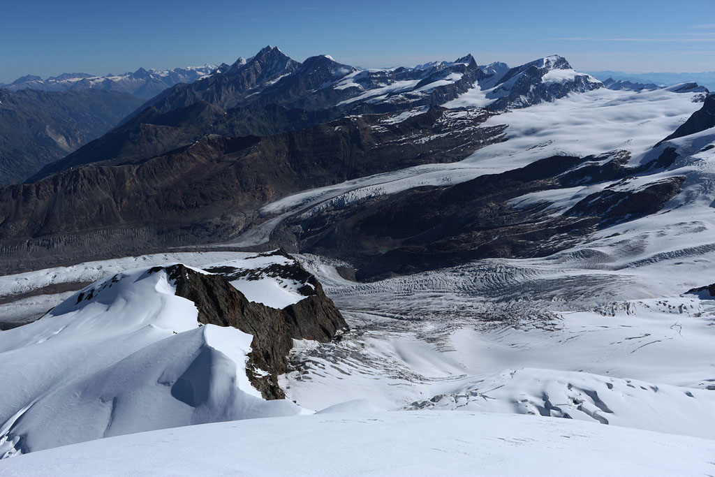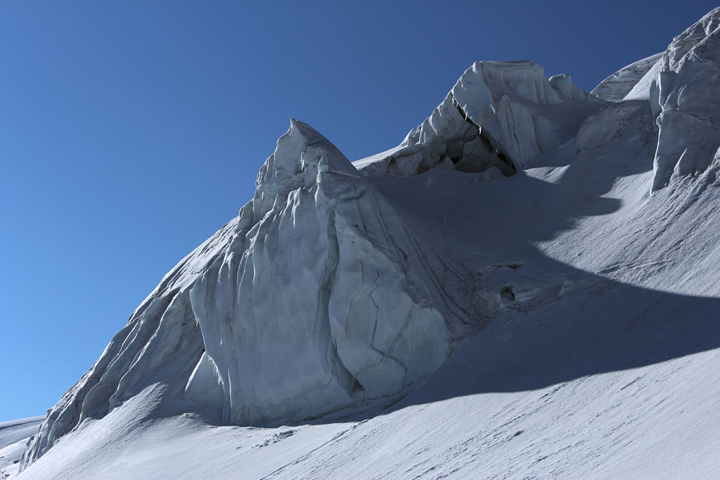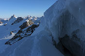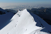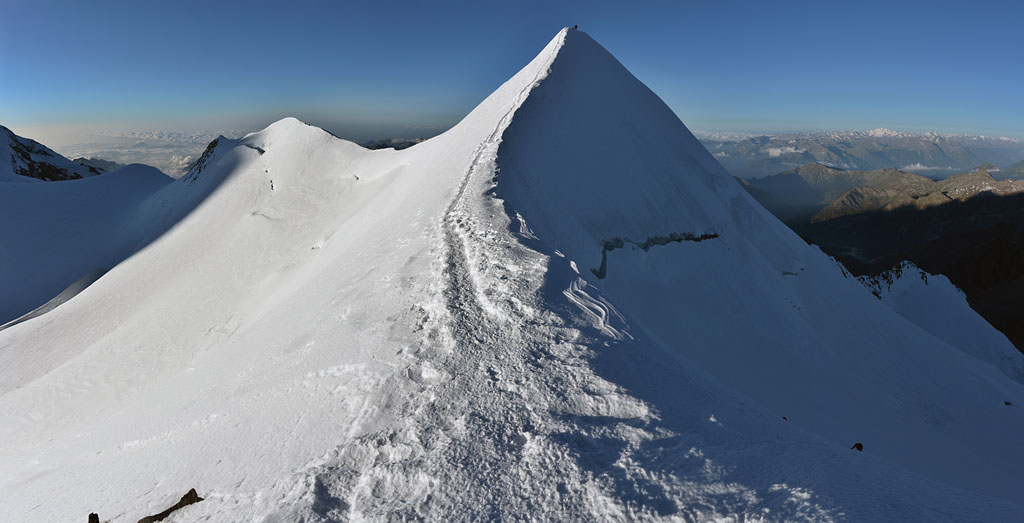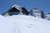 2.th day: Castor ascent via W flank, easy but partly steep snow, Pollux ascent via SW ridge, steep, partly fixed rope climb (grade II).