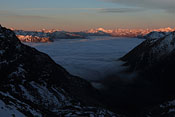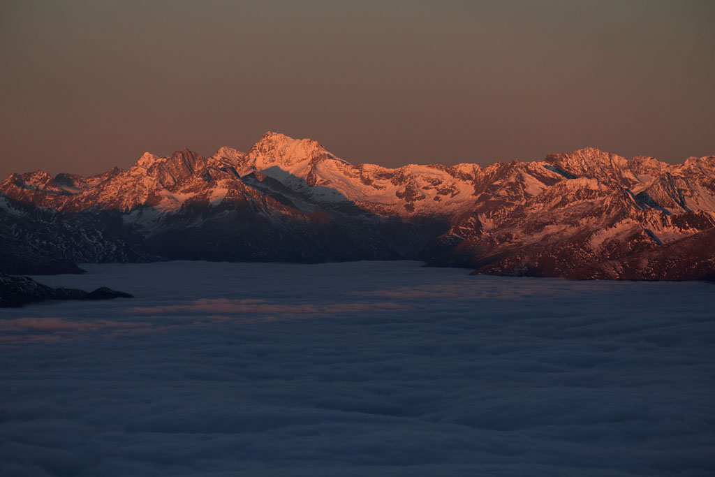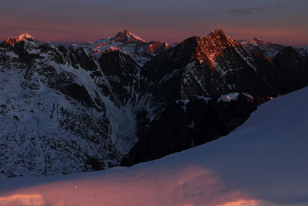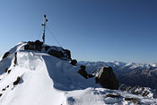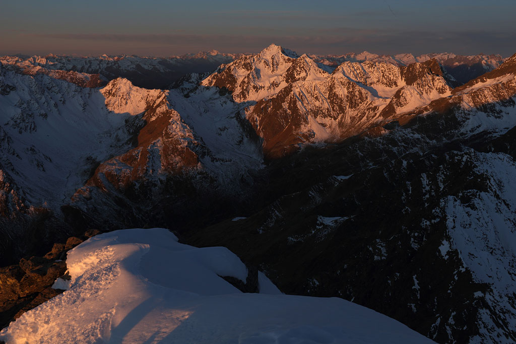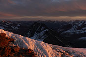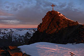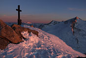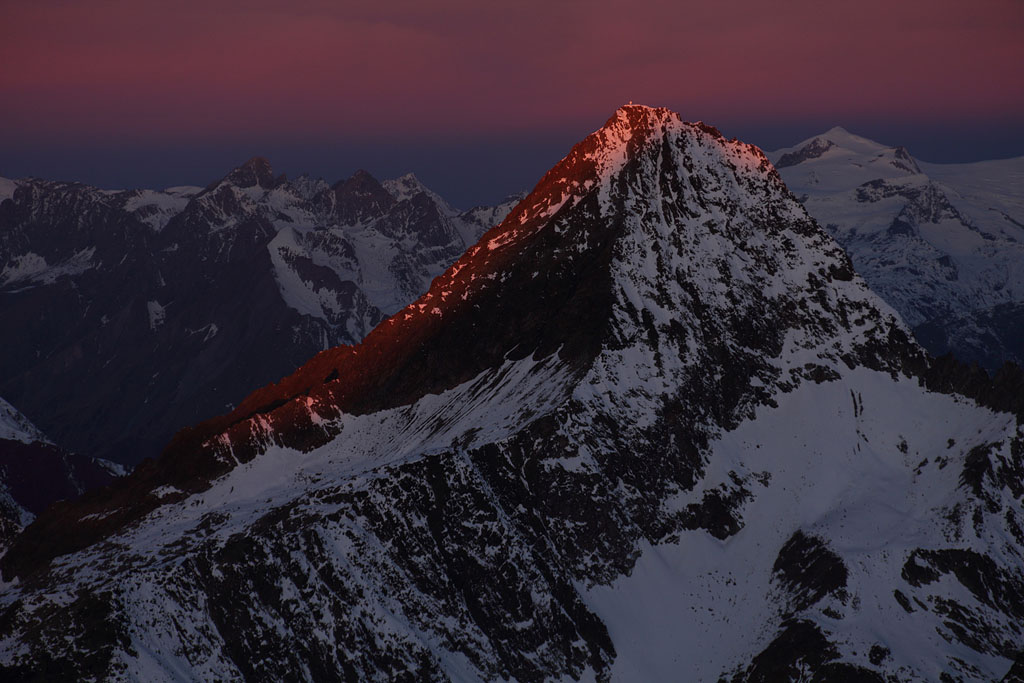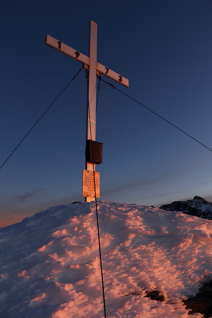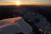 2.th day: night ascent to Kreuzspitze, beautiful sunrise, easy climb but near summit hard and icy snow. Very cold.