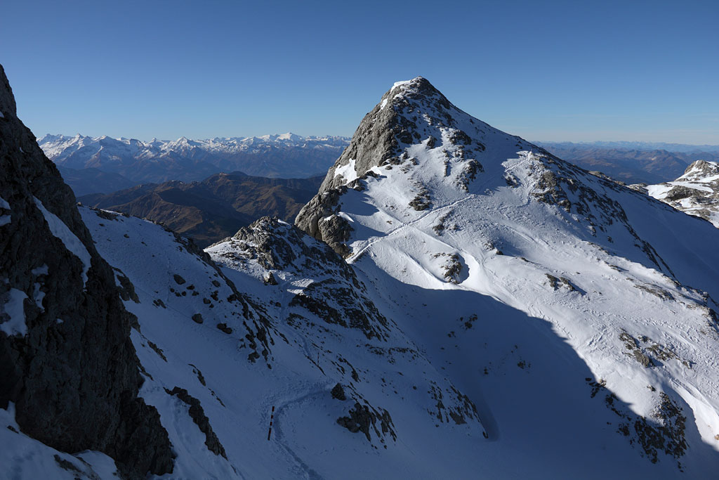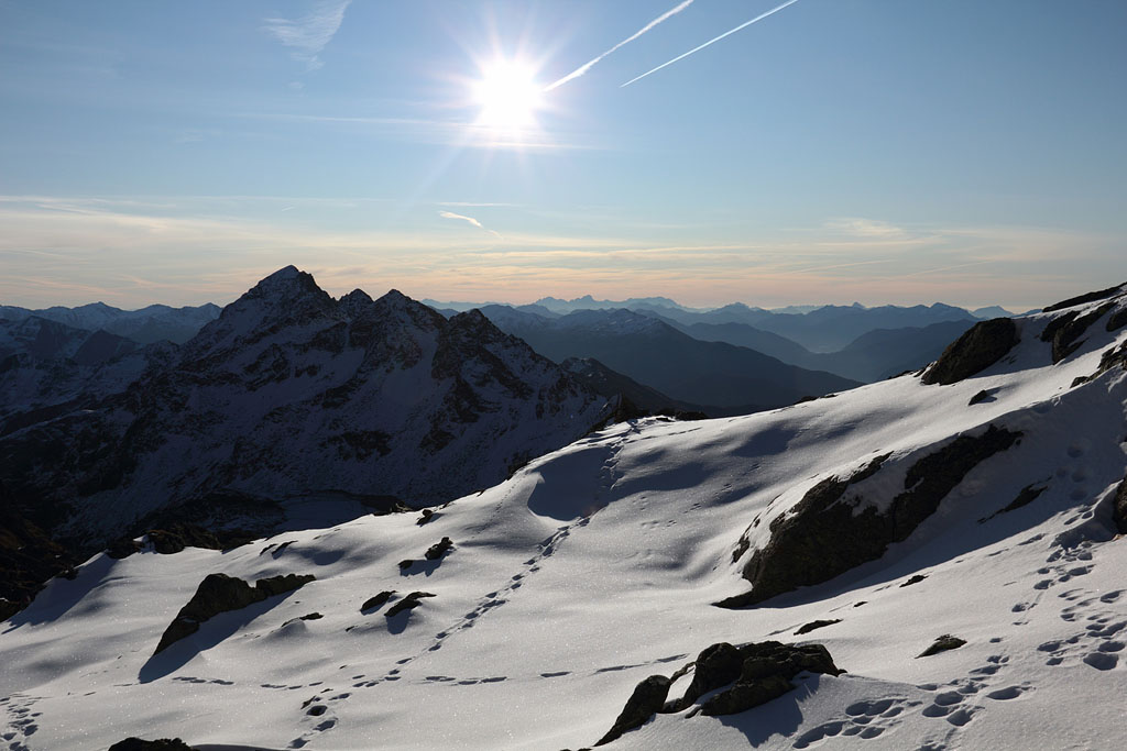 Day tour, ascent from Kemater Alm, N-ascent very snowy, but good foottraces, so easy climb. Afterward sidetrip to Gamskogel (2659m).