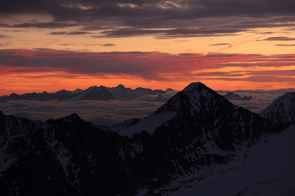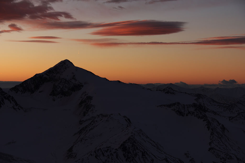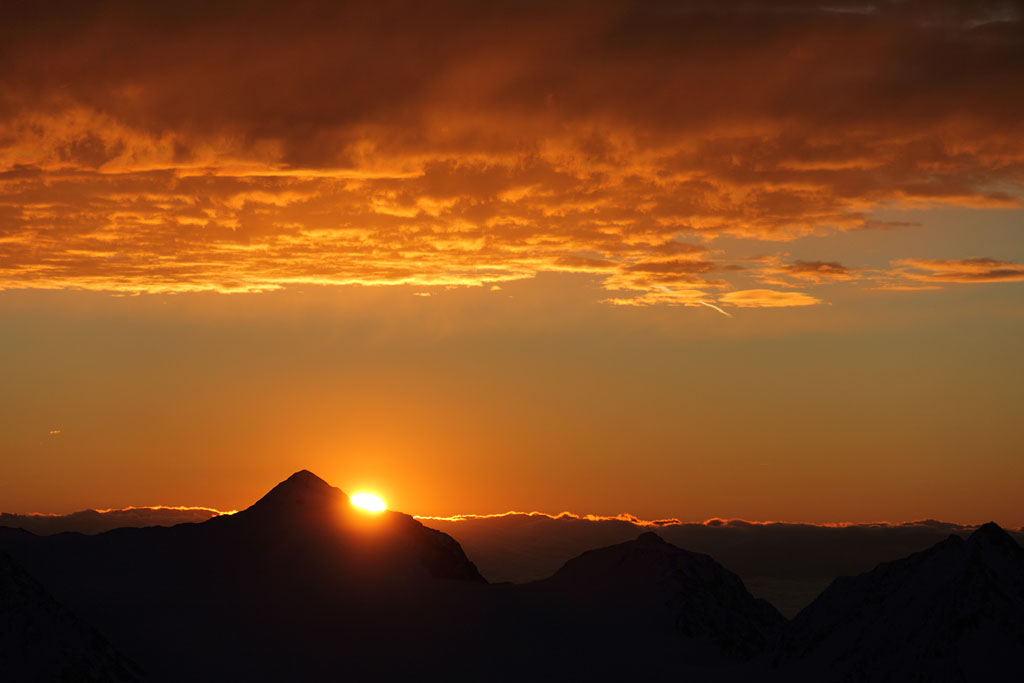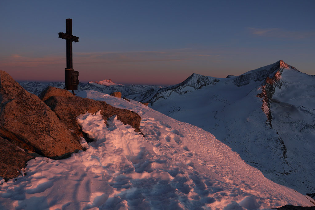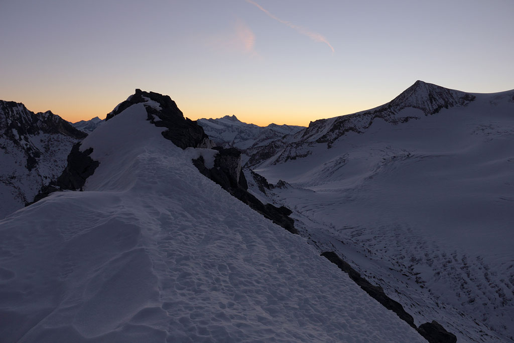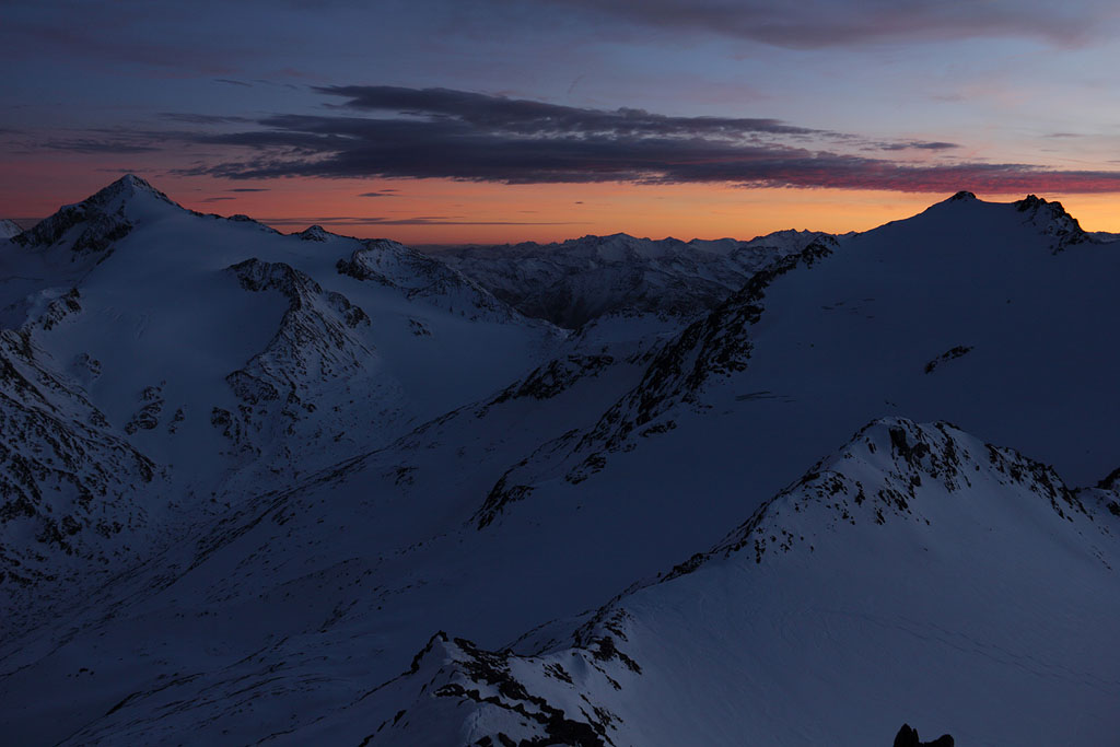1.th day: ascent partly with bike to Kürsinger hut, easy, but snowy and cold climb to Keeskogel summit, sunset and night descent to hut.