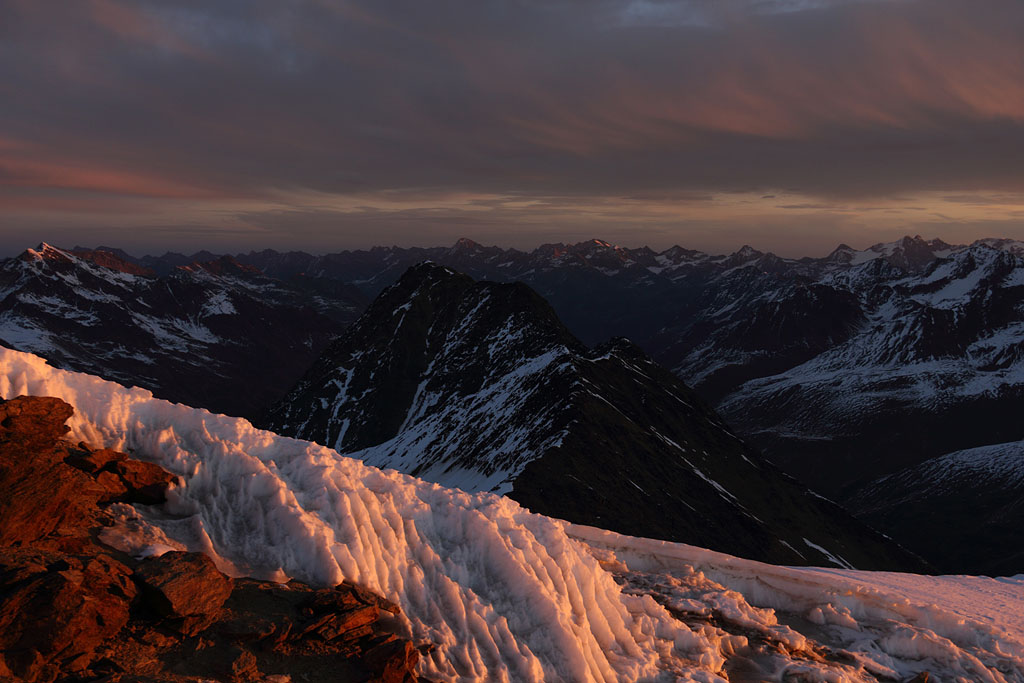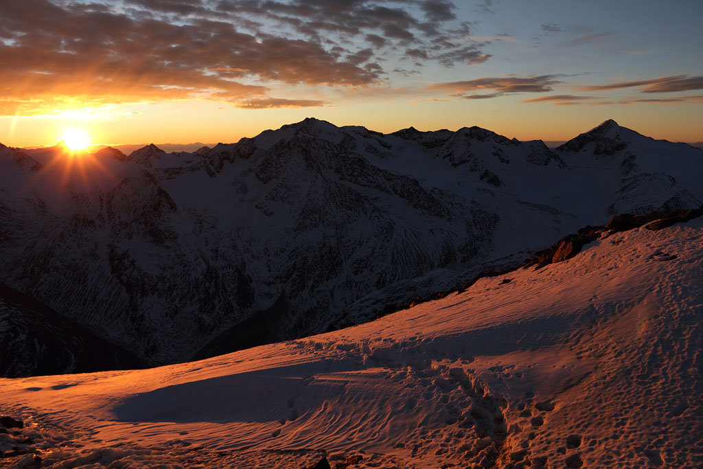 2.th day: night ascent via S-ridge to Perschitzkopf (easy climb, grade I), impressive sunrise at the top,