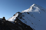 Easy climb, but partly bone hard snow flanks which took many hours more then expected to deal with (grade I+ due to bypassings).