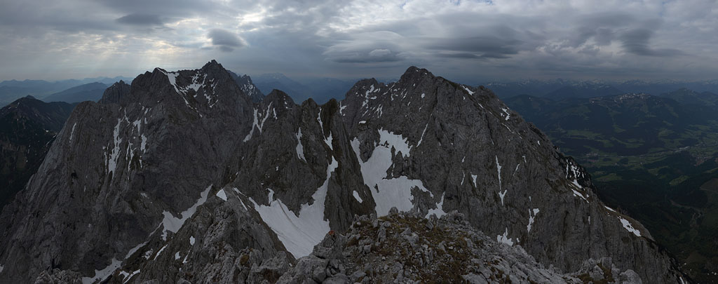 panoramic view to E - Ellmauer. Halt (left) to Treffauer (right) |