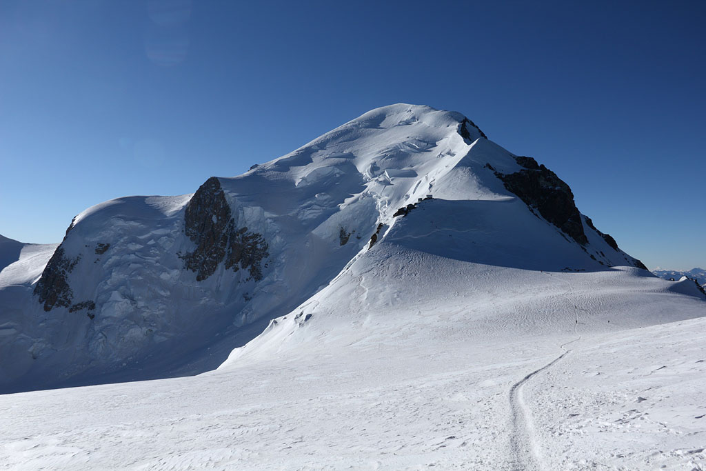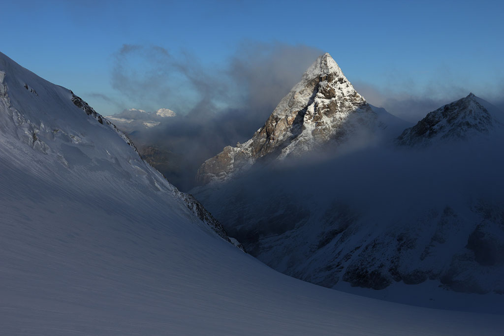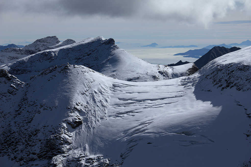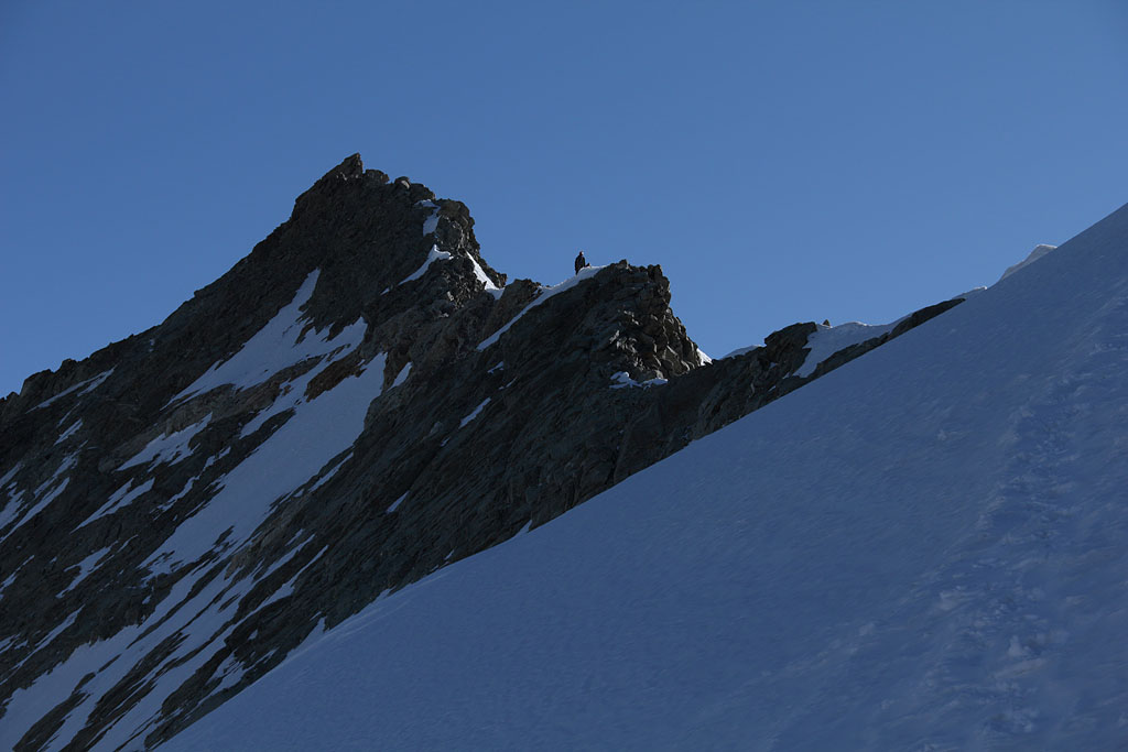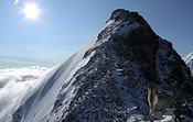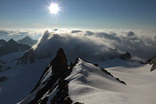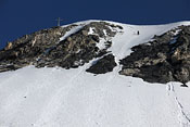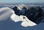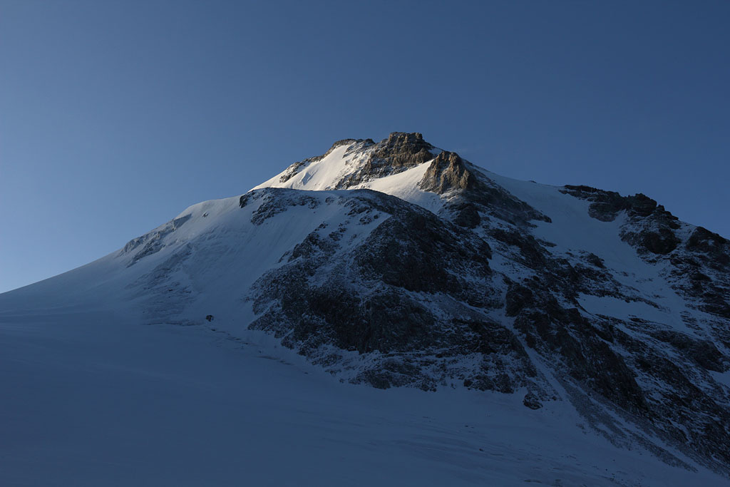 easy climb (grade I), but time-consuming crevassed glacier with trackless new snow and also due to fresh snow delicate, exposed summit ridge.