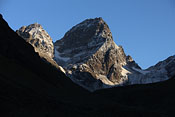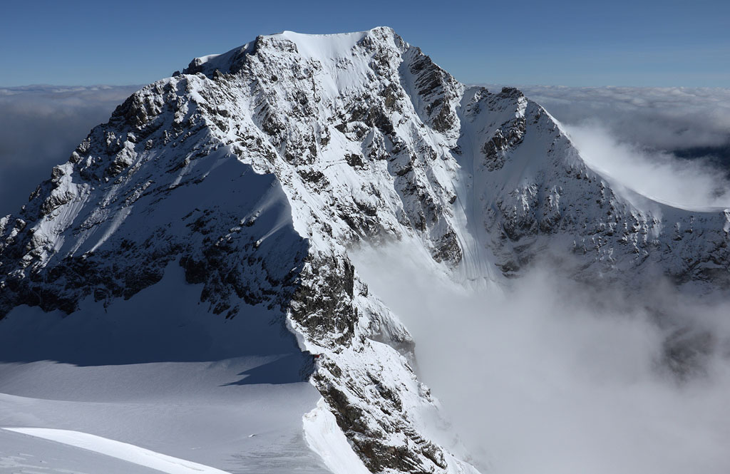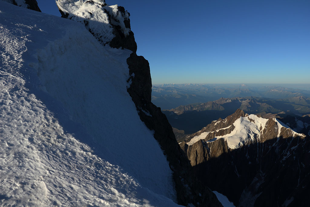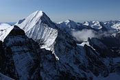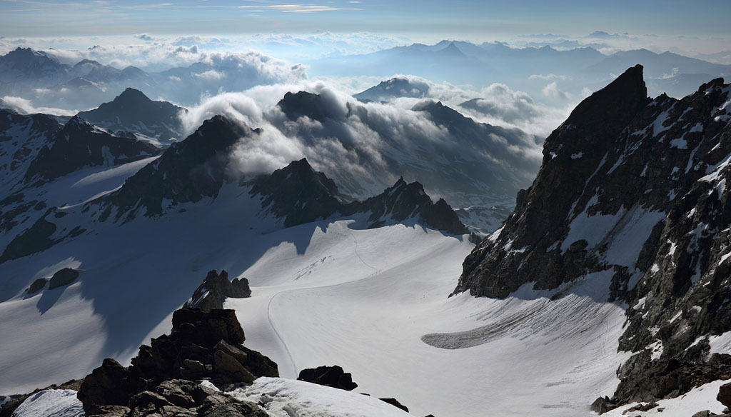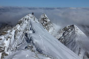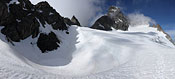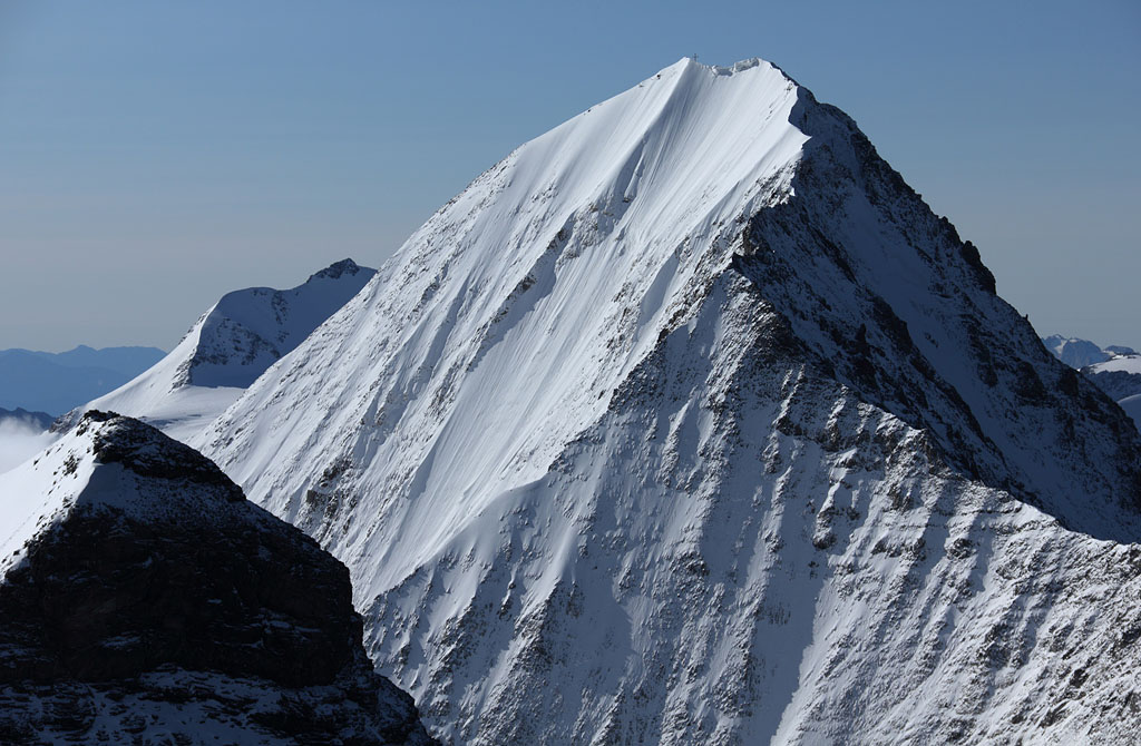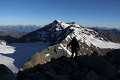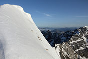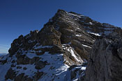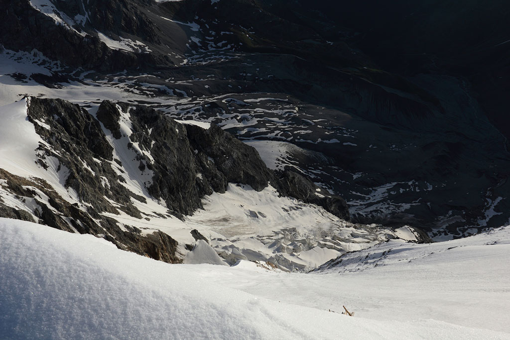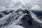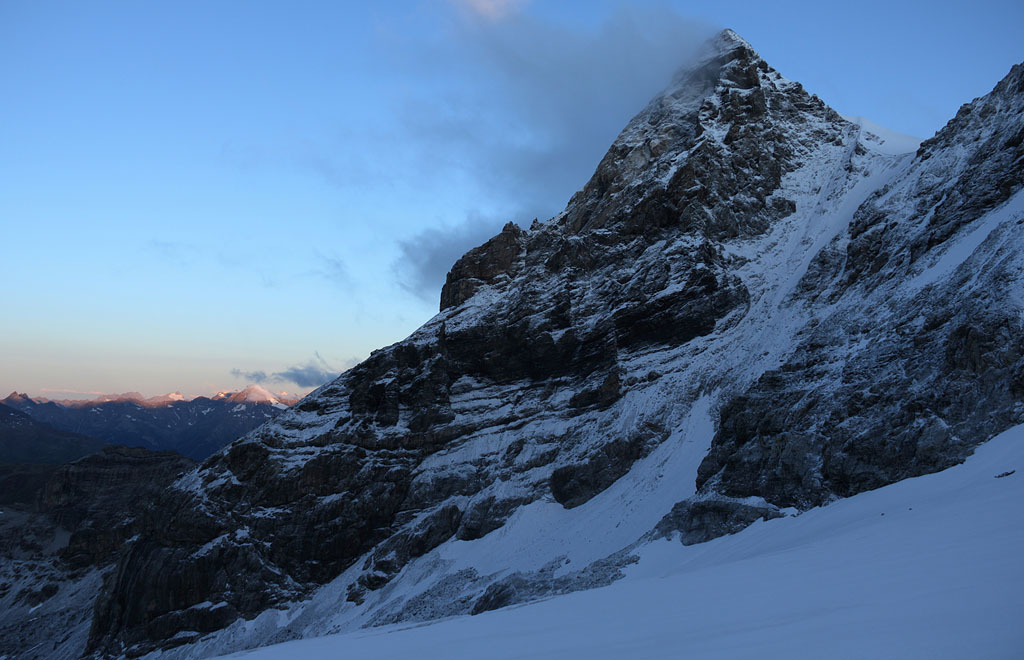 easy climb (grade I), but time-consuming crevassed glacier with trackless new snow and also due to fresh snow delicate, exposed summit ridge.