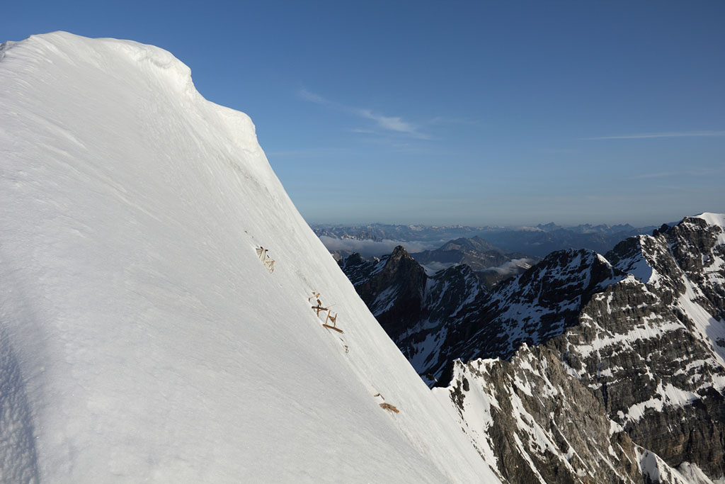 Day tour from Nesselwängle, easy climb (grade I) but partly very exposed hard snow. Crossing of Schneidspitze (2009m)