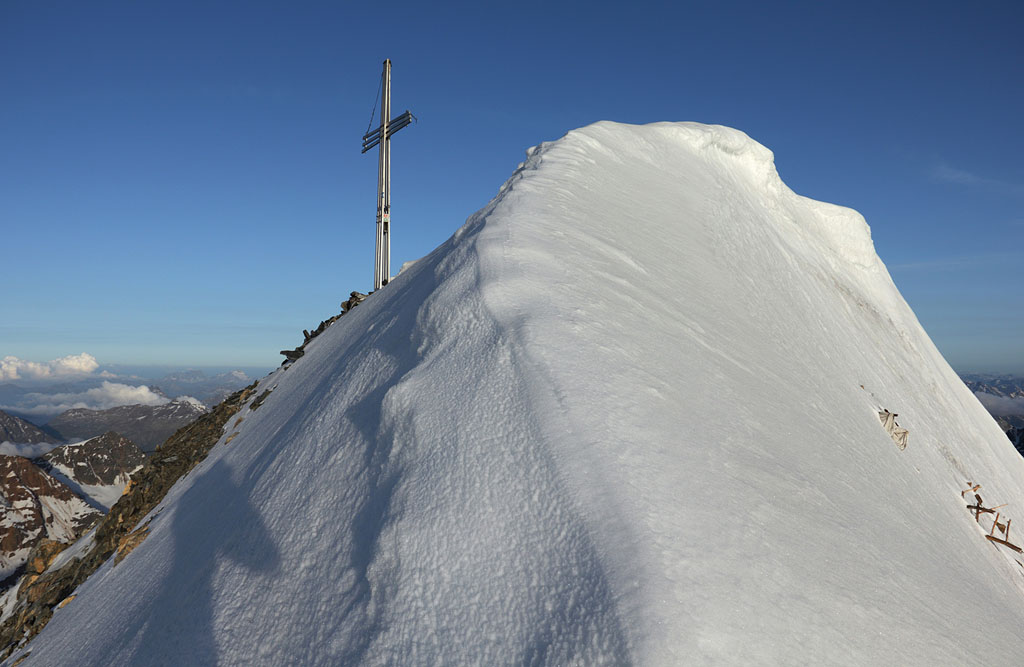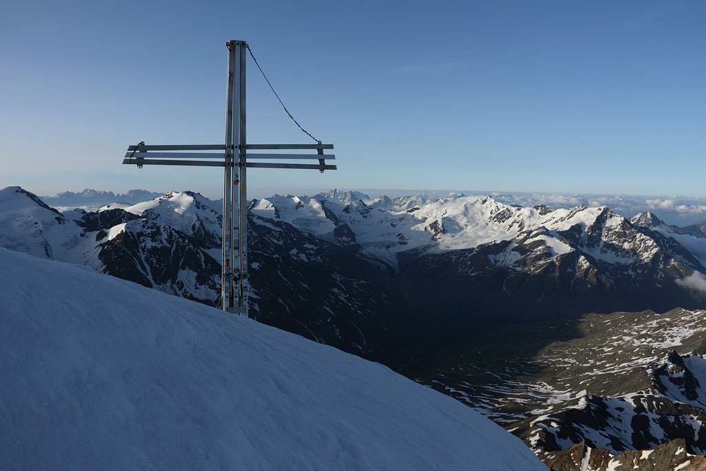Day tour from Galtür/Scheiben Alm. Ascent via Chalaus glacier and W flank, easy climb (partly grade I), sometimes strenuous.