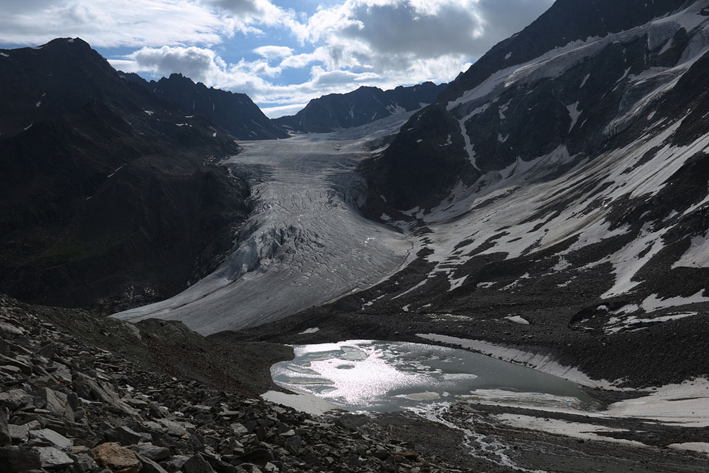 Day tour from Rudolfshütte. Easy climb (very small part grade I+), normally impressive landscape but unaesthetic due to strong glacier retreat.