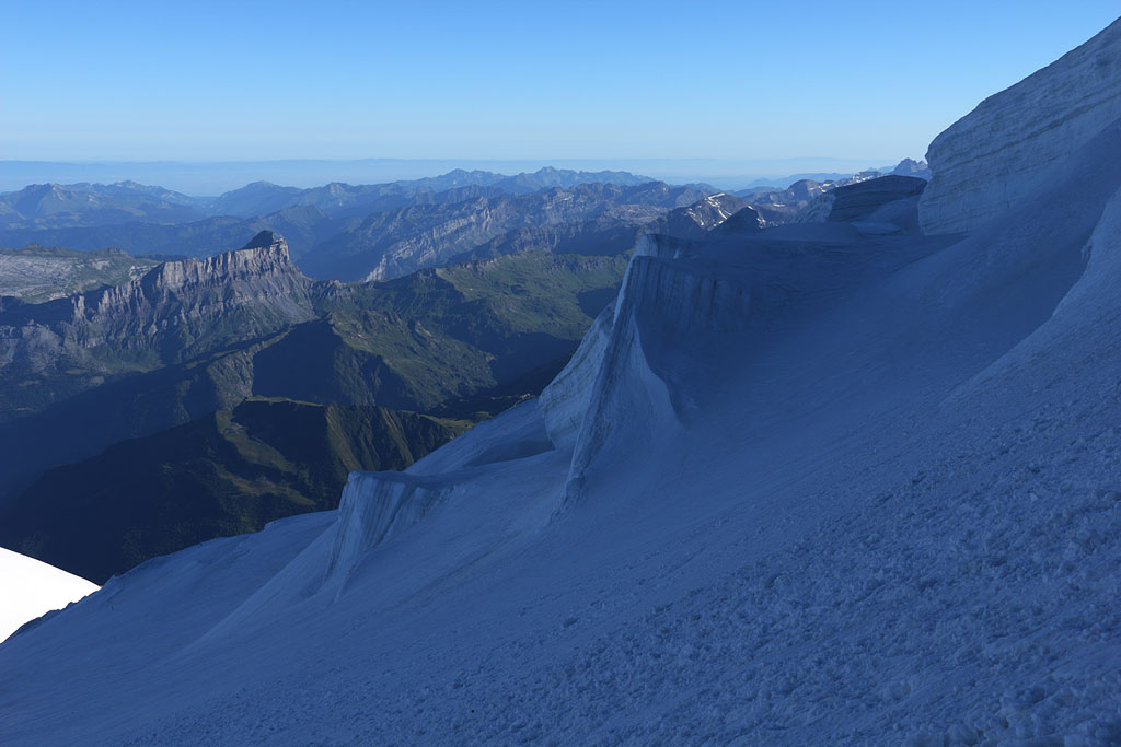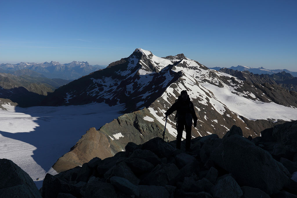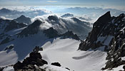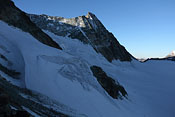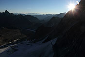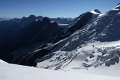 Ascent to Cab. des Dix, next day climbing summit via W-ridge, easy climb (grade II) with glacier sections.