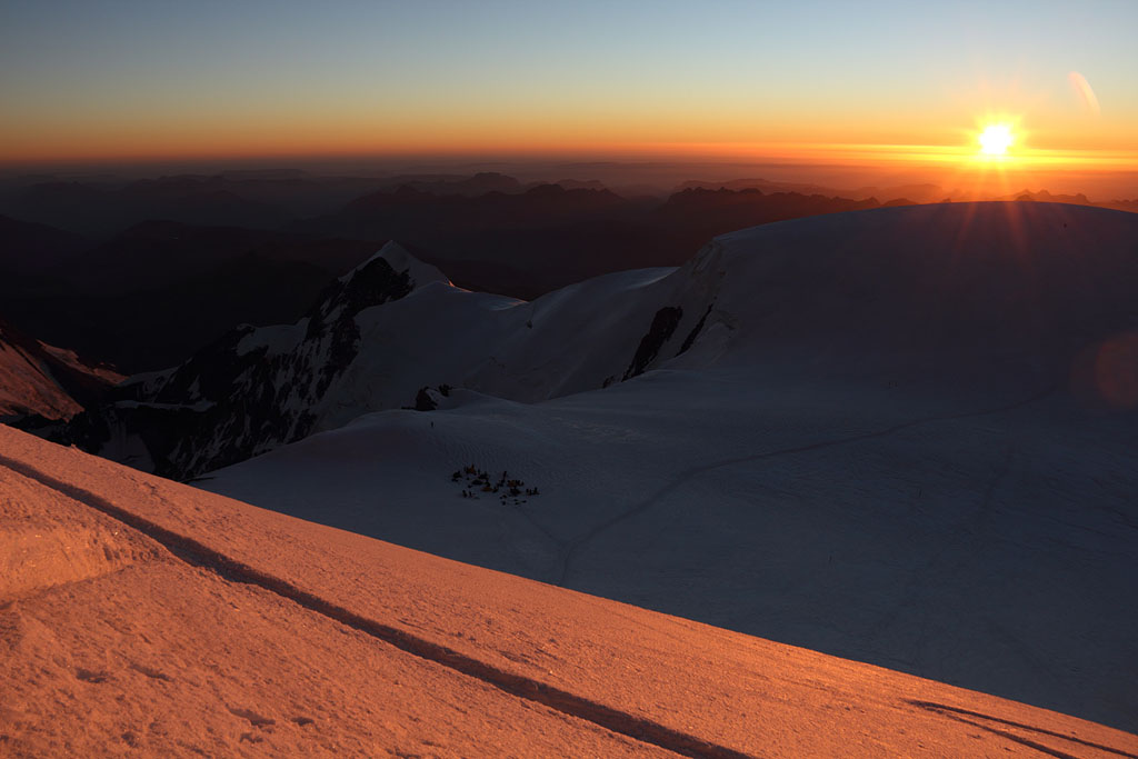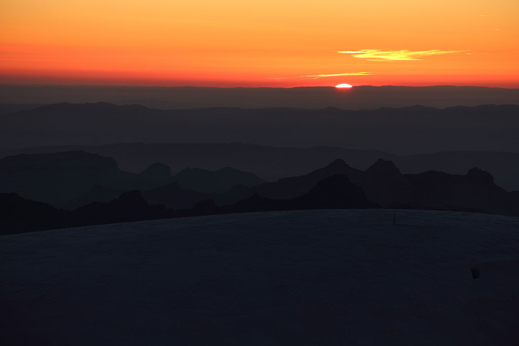 2.th day: Bosses-ridge to summit at night (first one this day), sunrise on top (icy wind), descent to Bellevue and drive home.