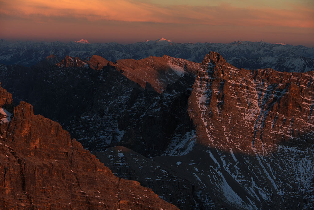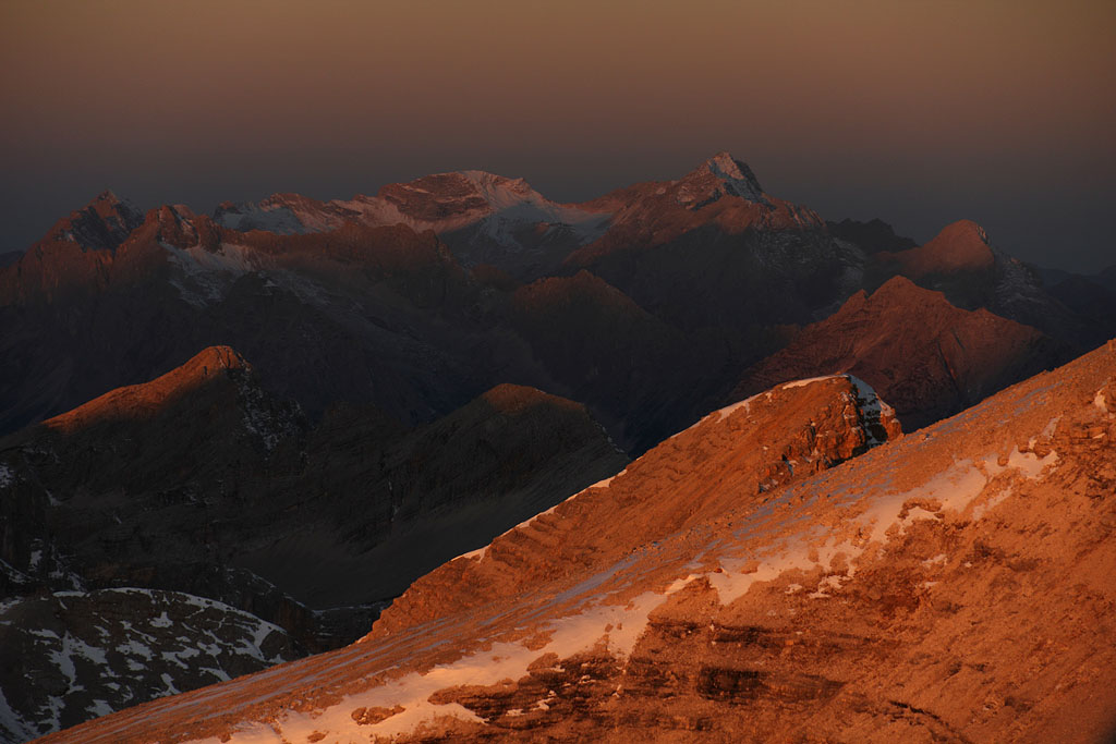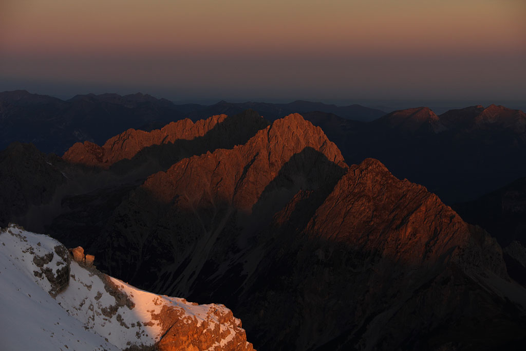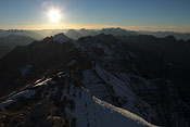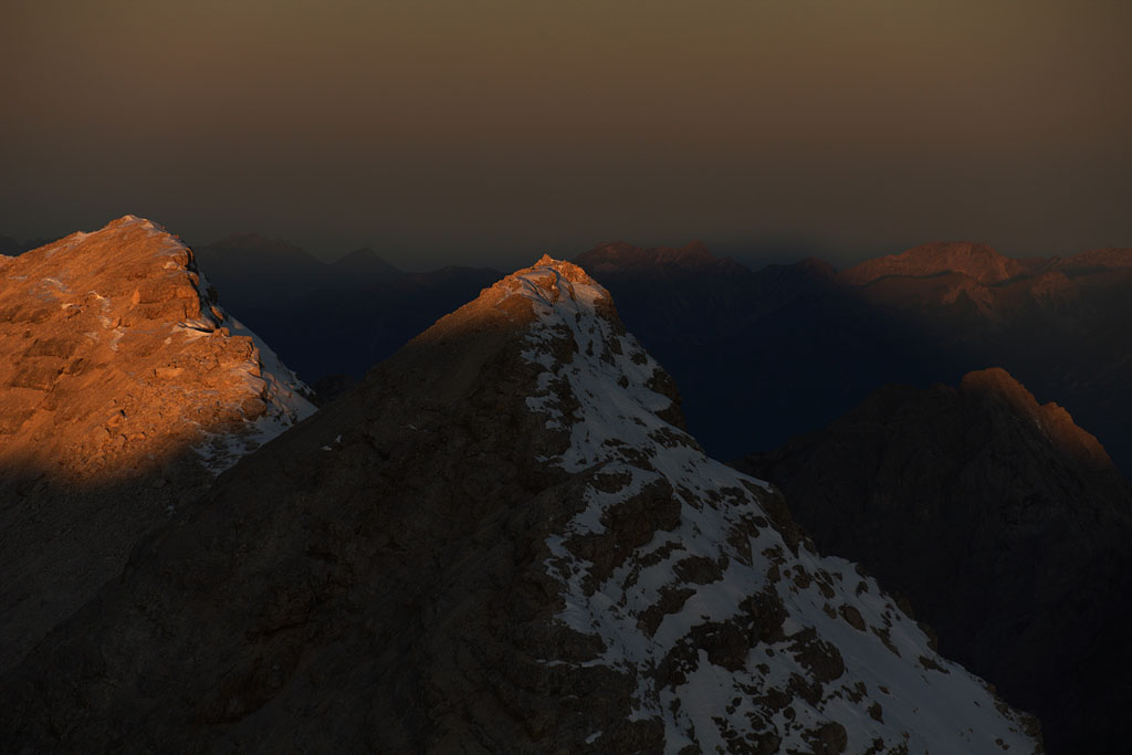 2.th day: night ascent to Birkkarspitze, sunrise on the top, descent and back to Scharnitz. Easy climb, but partly icy and exposed.