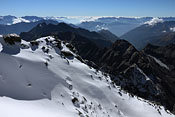 Day tour, ascent from Arnoga with mountain bike to Passo de Verva, then SW flank and E-ridge. Easy climb (E-ridge exposed, grade II).