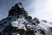 Day tour from Mittelberg, easy climb but extremely brittle rock (grade I+) with huge loose boulders alongside the long ridge.