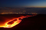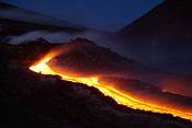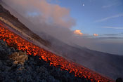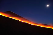 summit cones of Etna with Valle del Bove lavaflows in a fullmoon night |
