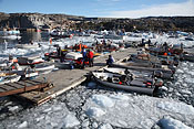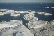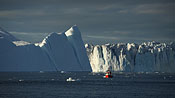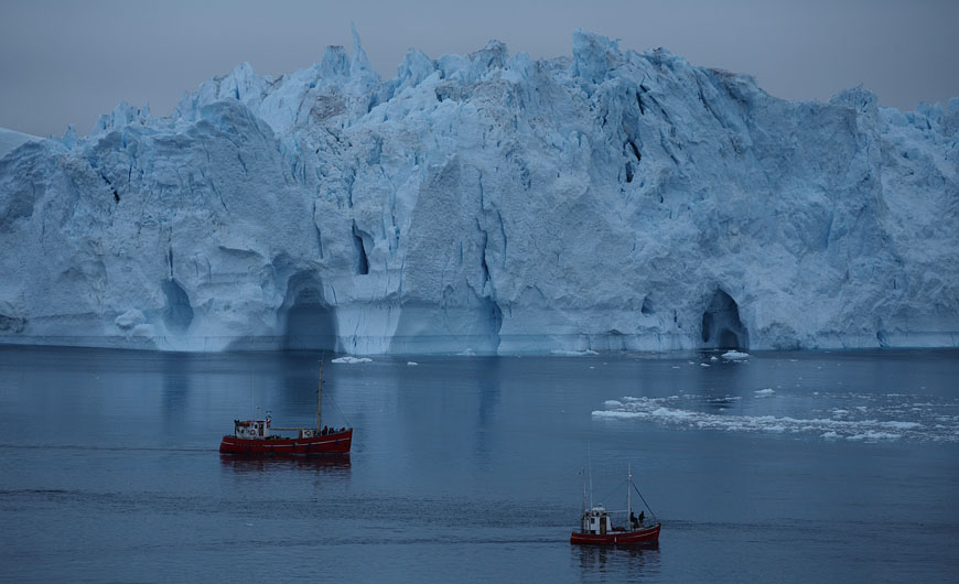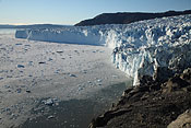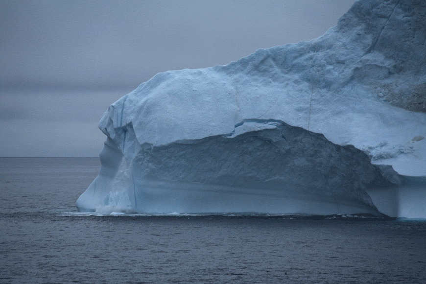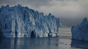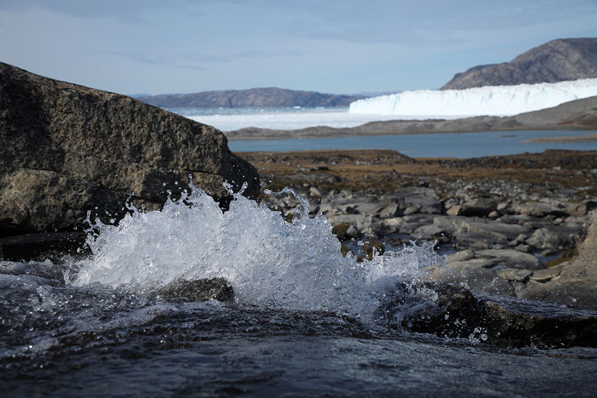 small tsunami like waves from calving clacier are discarding ice pieces |