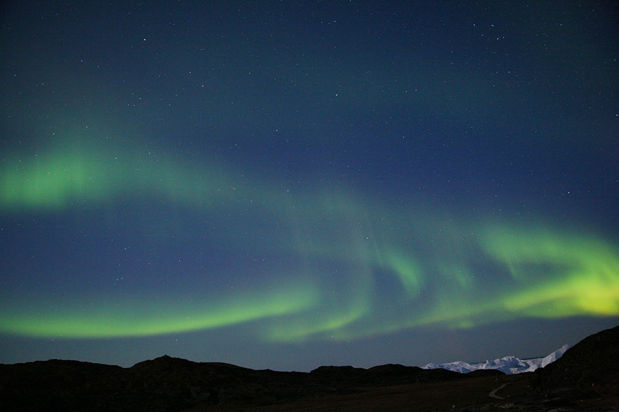 change of the seasons-northern lights are greeting me for the first time when arriving back to Ilulissat |