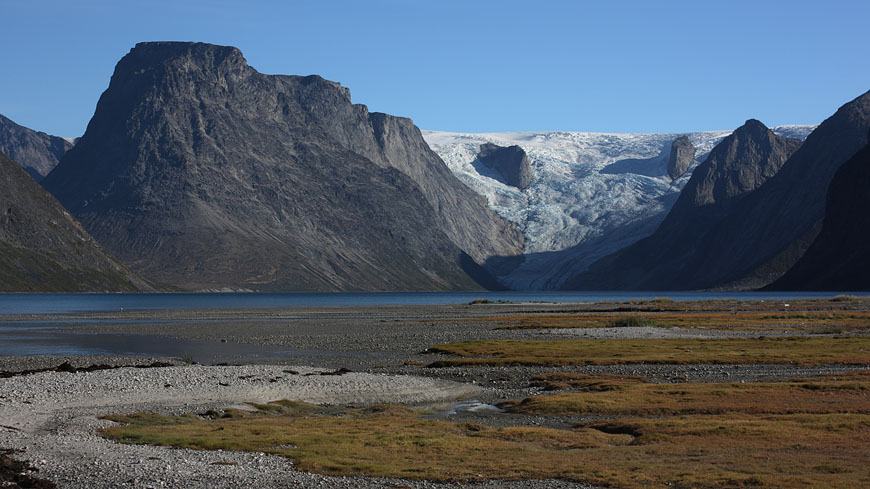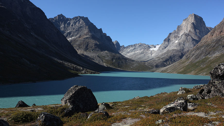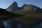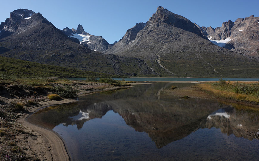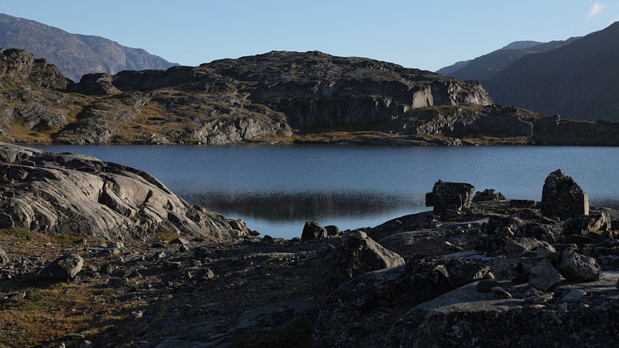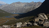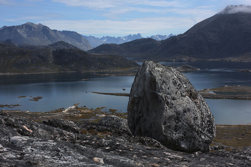 still nice weather and enough time to climb the Qaqqatsiaq mountain - giving a wonderful view to Tasersuaq lake and the Qinnguadalen far behind |