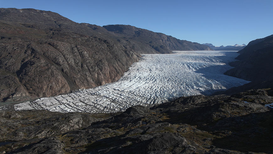 first view of Sermeq glacier defining the end of Tasermiut fjorden |