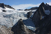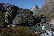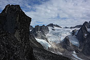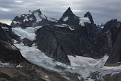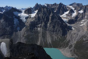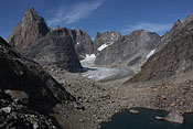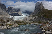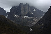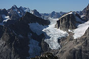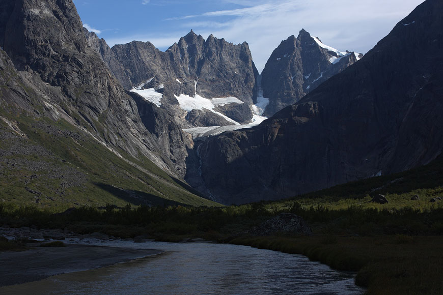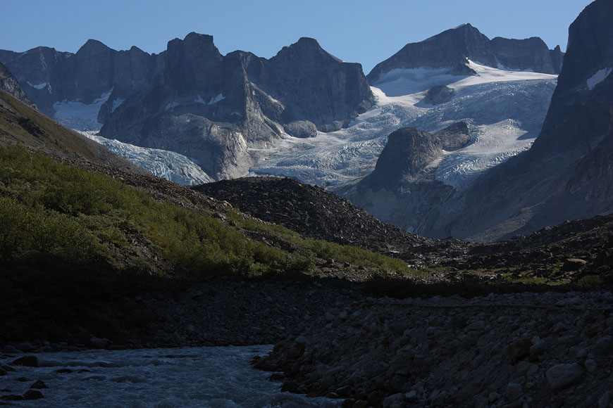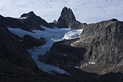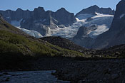 entering Tupaassat valley under hanging glaciers |