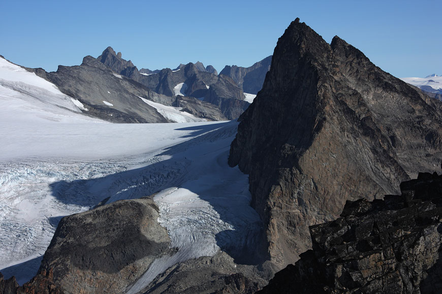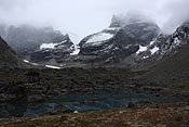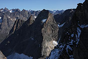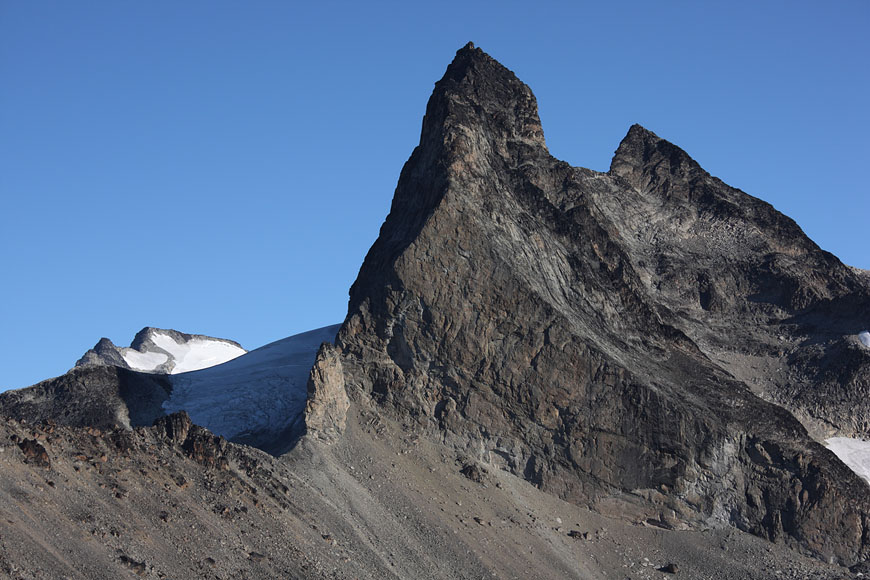 standing near to the dominant Ketil summit, towering more than 2000m above the sea, beeing still 500m below its summit |