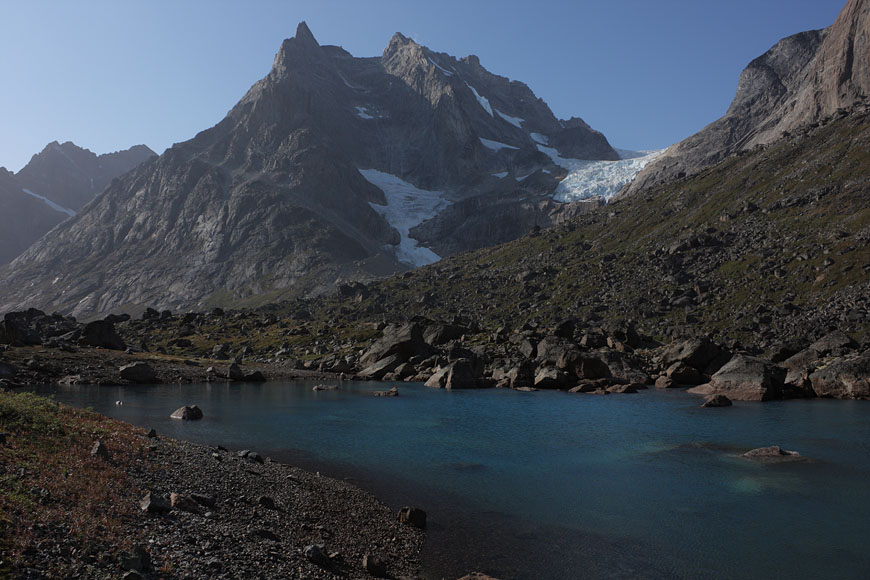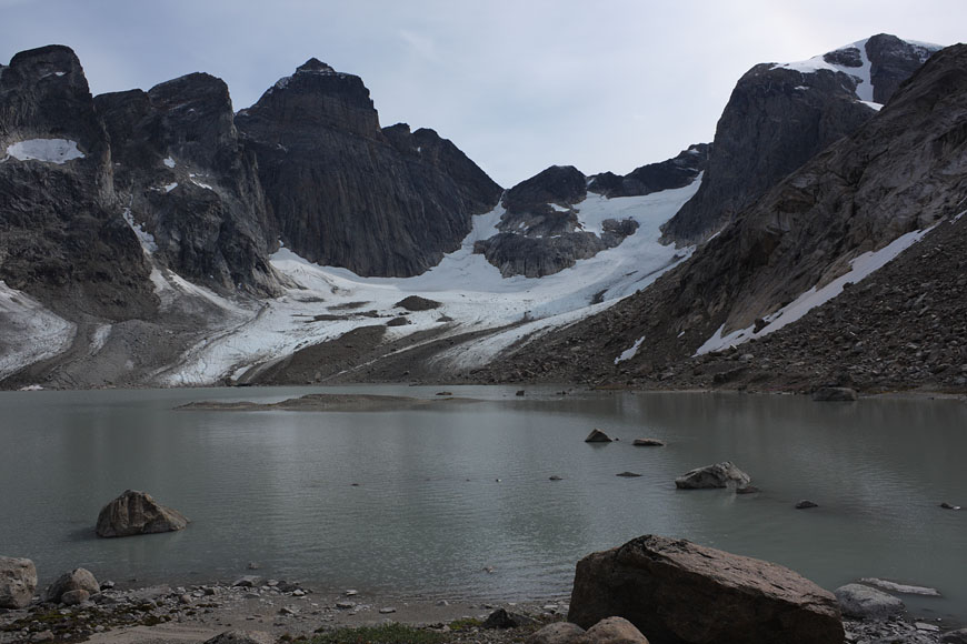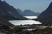 reaching glacier lake at the end of Qingeq kujalleq valley, but glacier retreat melted the expected glacierfront away...so turning back to the lake |
