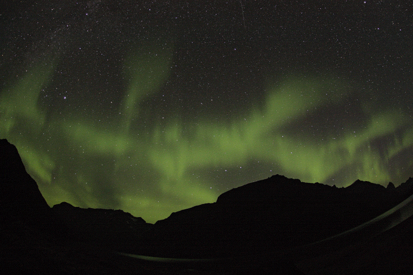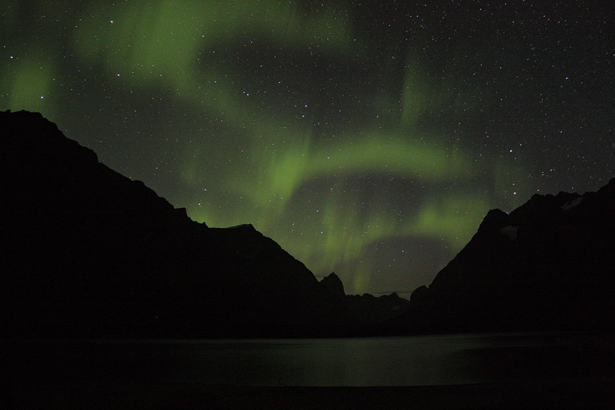 first sign of coming winter - northern lights seen from my camp at the shoreline of Tasersuaq lake |