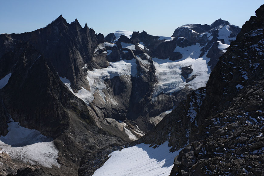 view back to recently crossed pass while investigating planned climbing route |