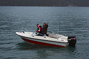 Inuit boat leaving me behind in Klosterdalen - this will be my last view of any humans for the coming weeks |