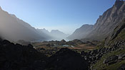 finding the right pass leading to the following valley to the N is a difficult 1000m climbing task without any trails and steep rock walls between |
