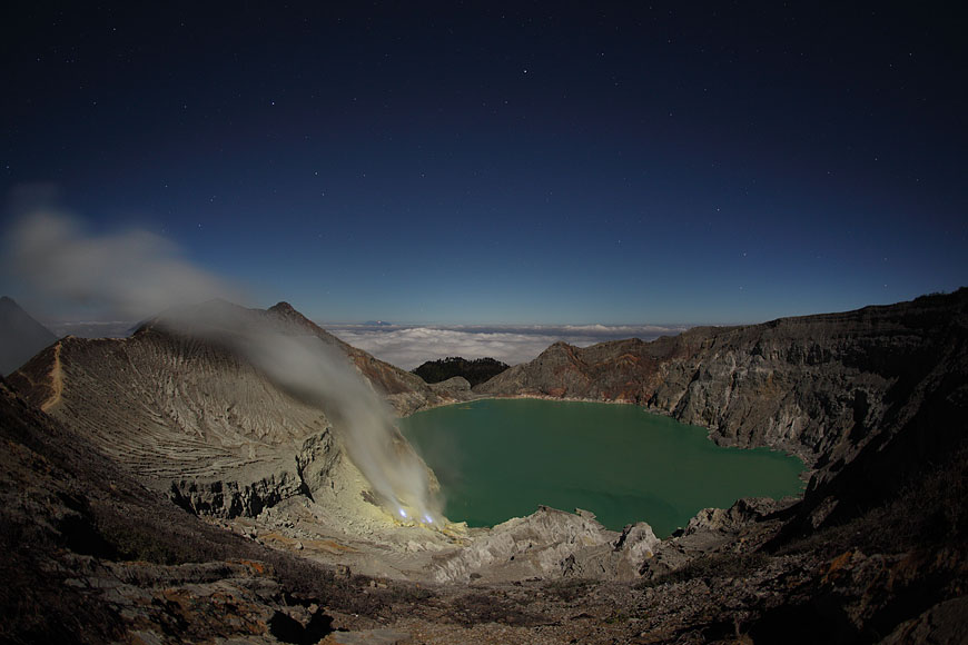 steaming Kawah Ijen before ascending |