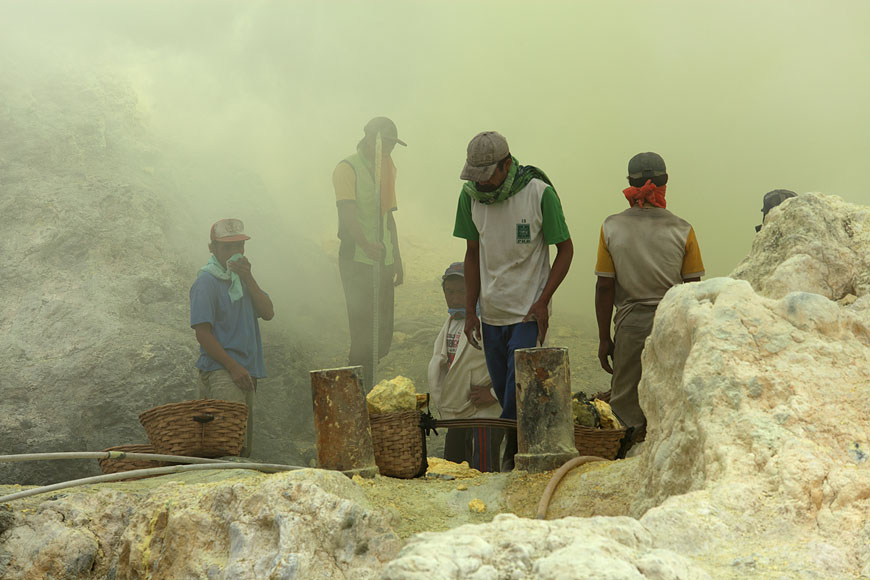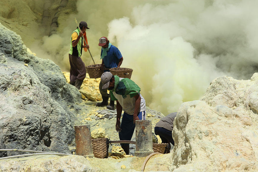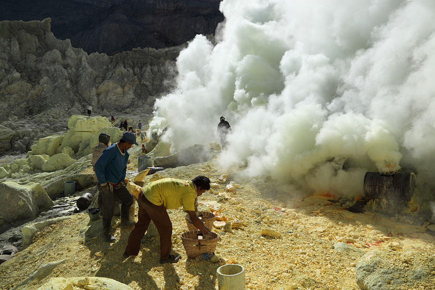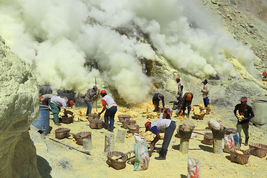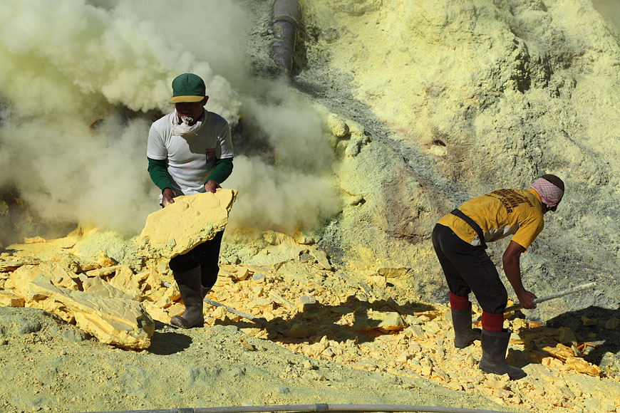 workers collecting sulfur |