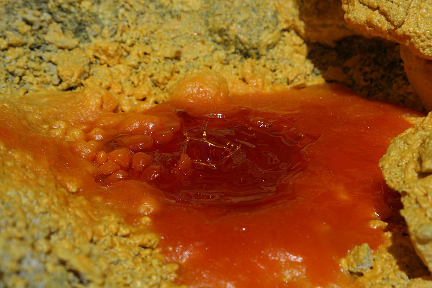 pool of molten sulfur with impacting droplets |