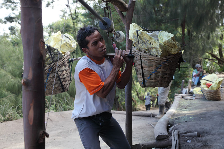 carrying up to 80kg sulfur per worker |