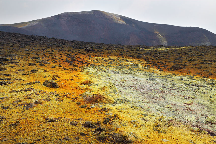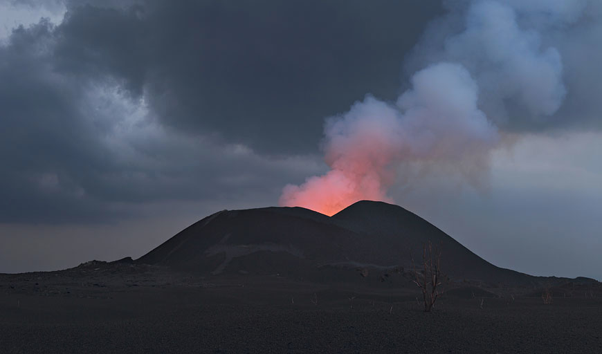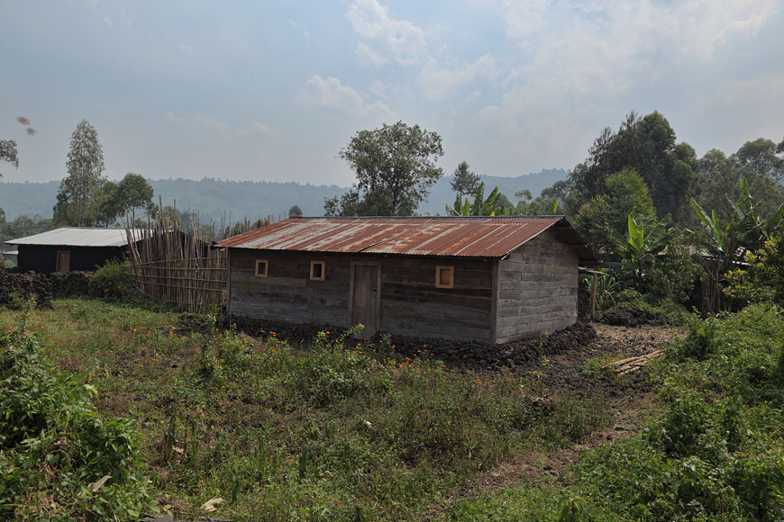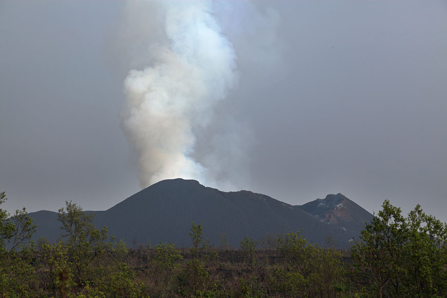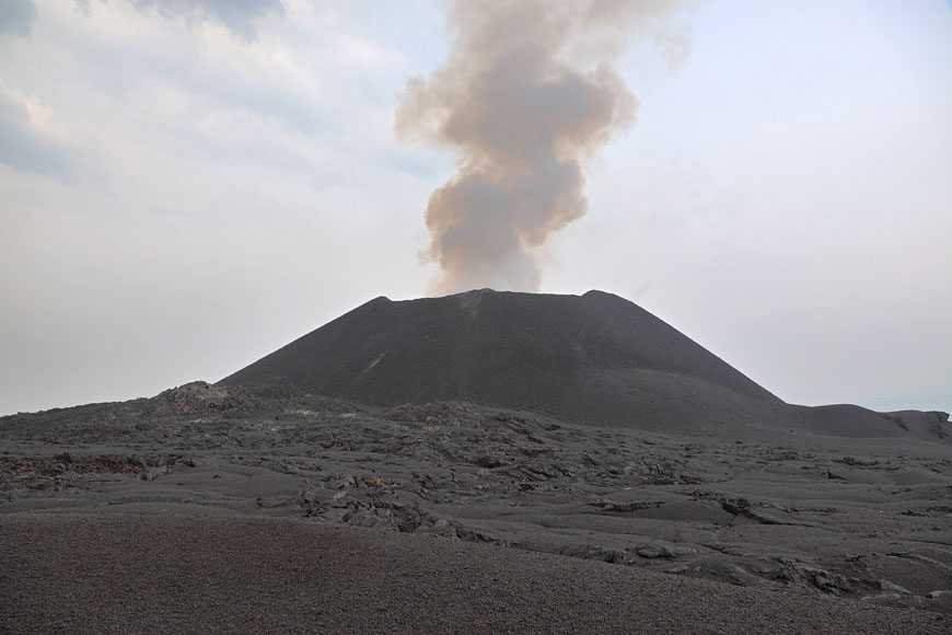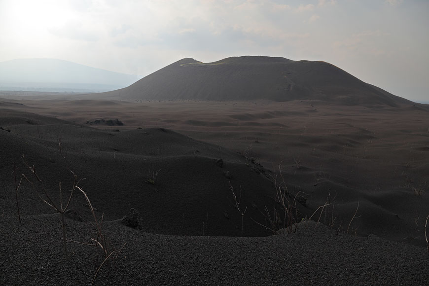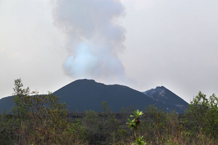 view to Nyamuragira main volcano with first, now inactive Kimanura craters