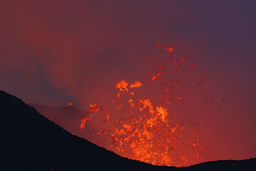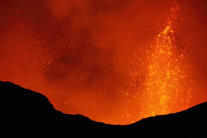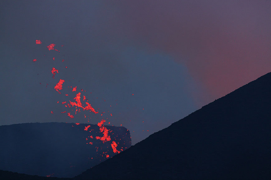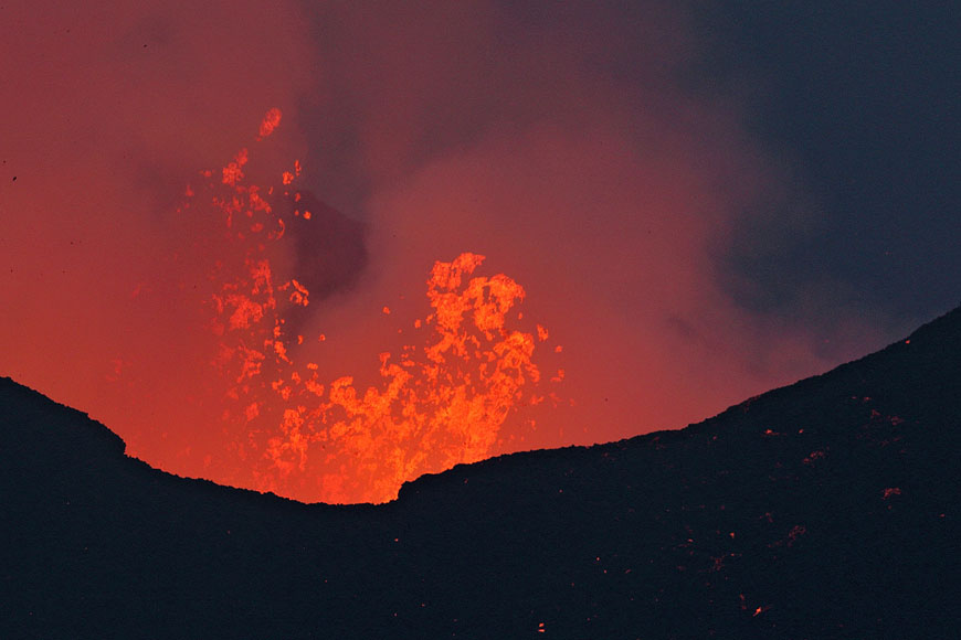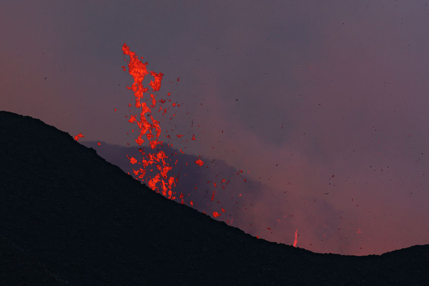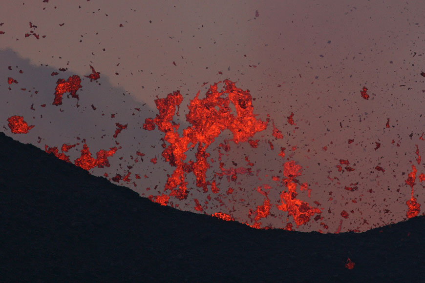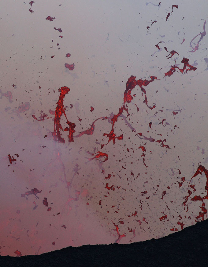 Lava jet escaping from permanently active lava lake inside northernmost crater |