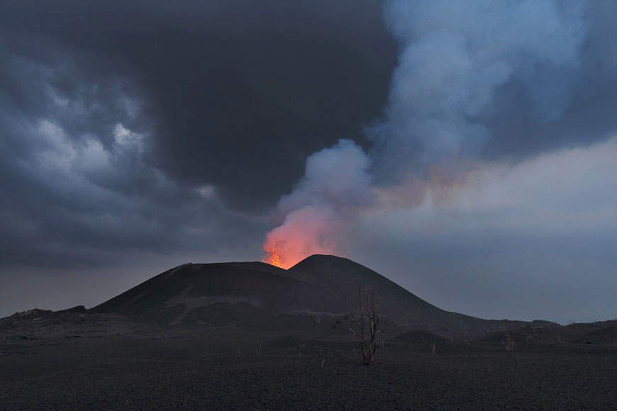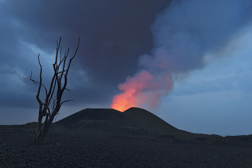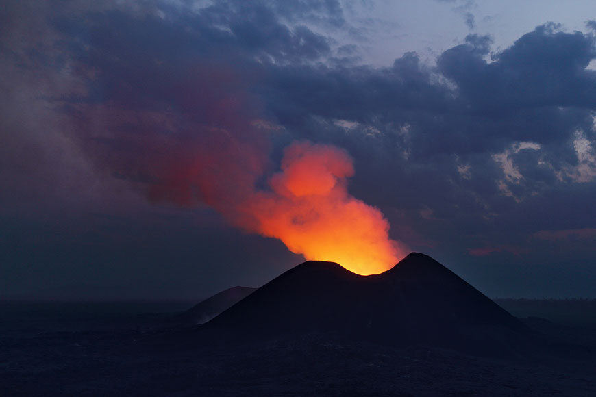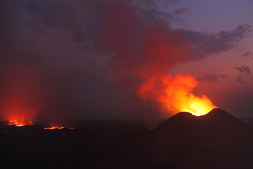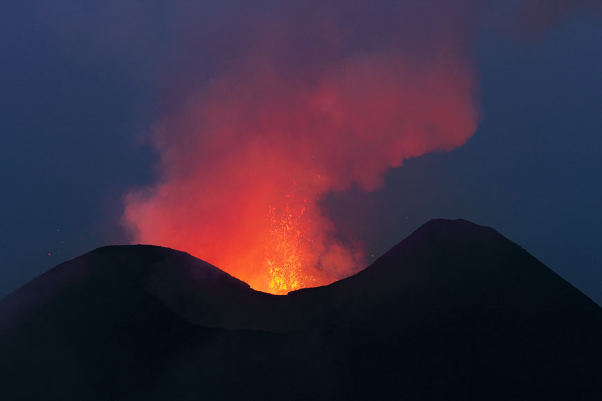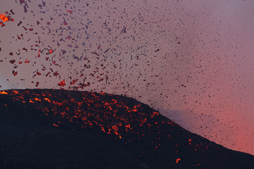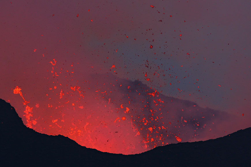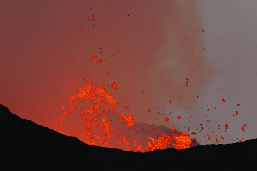 Lava jet escaping from permanently active lava lake inside northernmost crater |