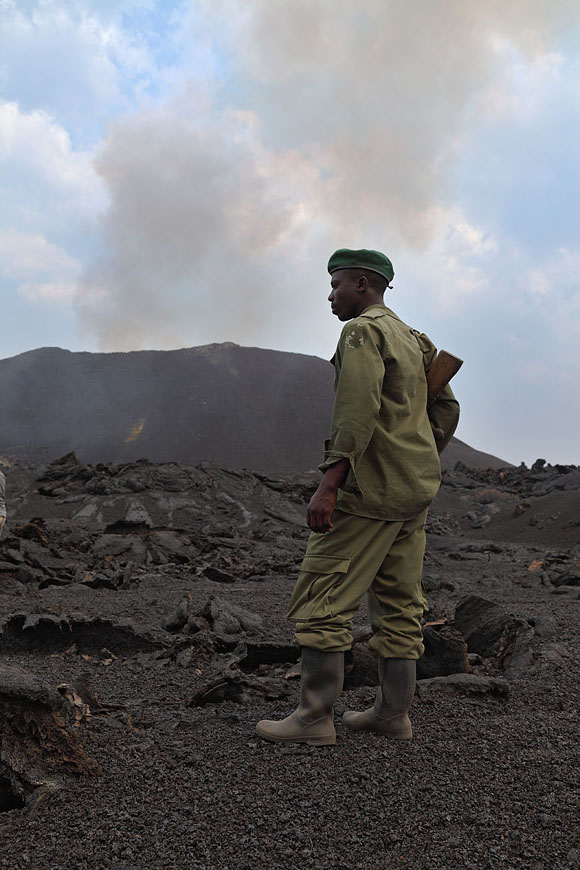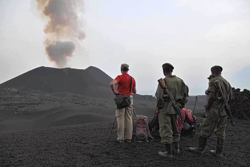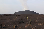 rangers standing on the usual visitor hill, giving scale to the active north crater |