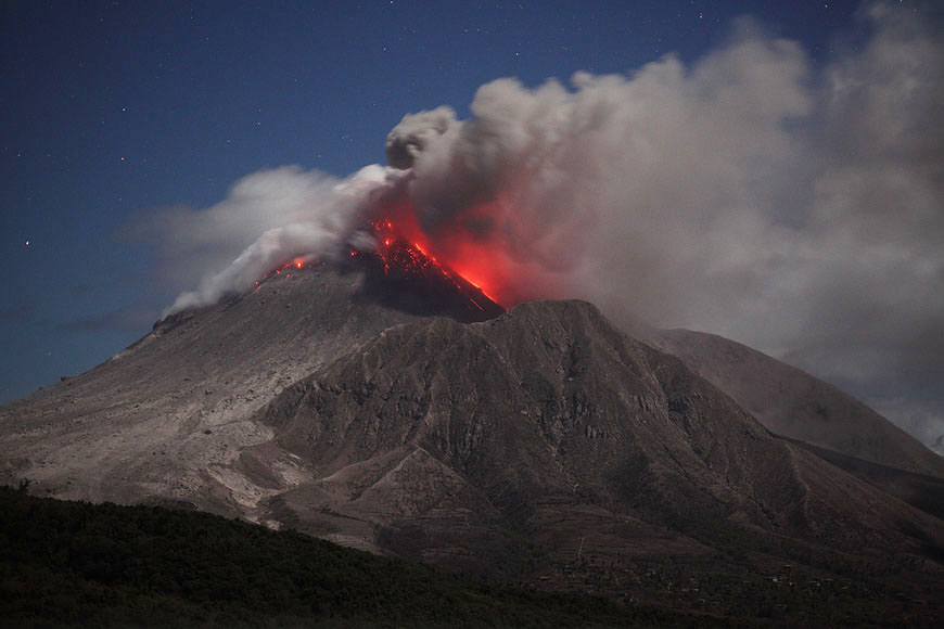 Pyroclastic Flow (PF) by night seen from Jack Boy Hill |