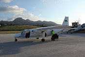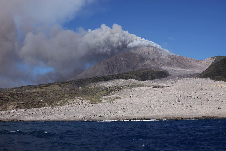 entering a rental boat in northern part of Montserrat - a different word far away from the volcano |
