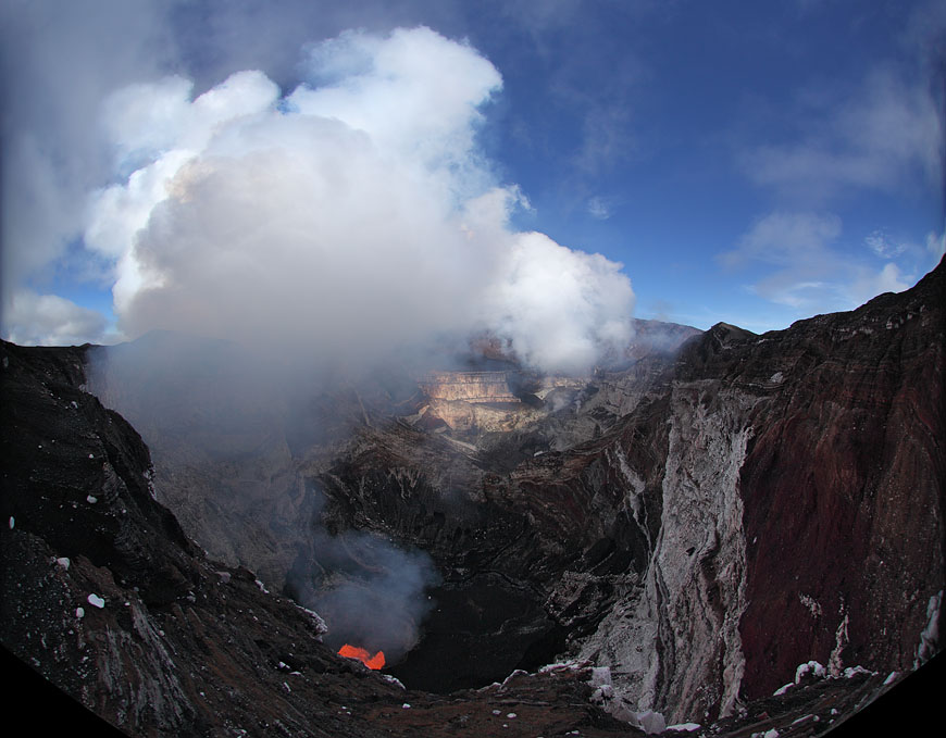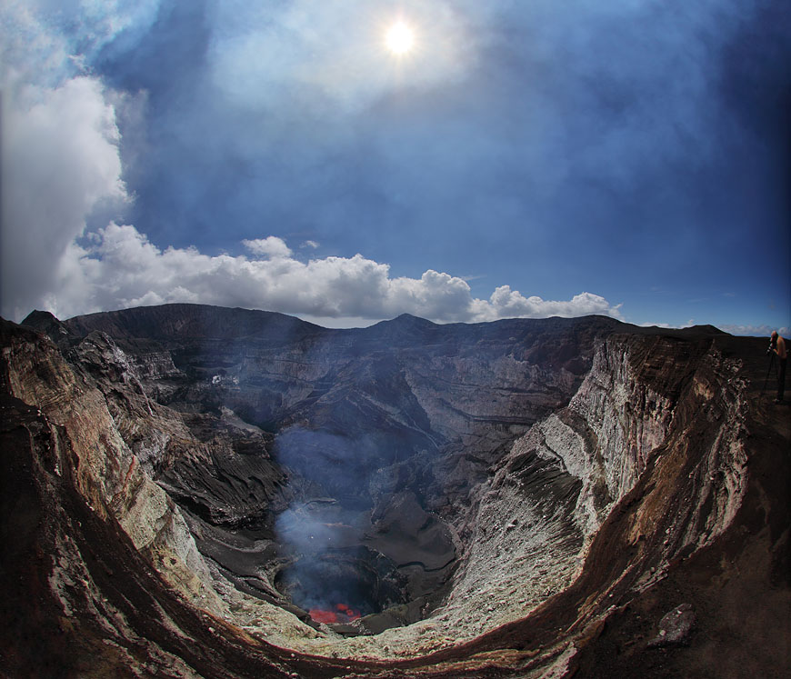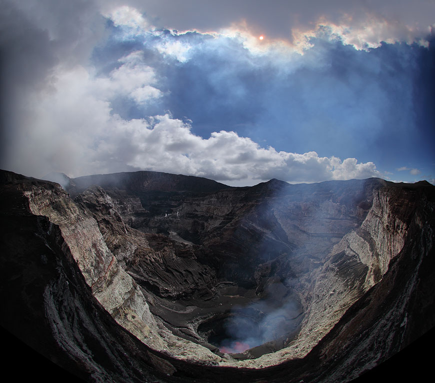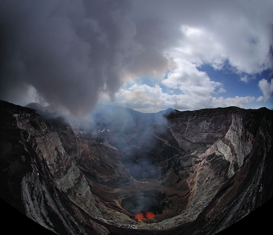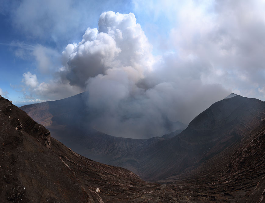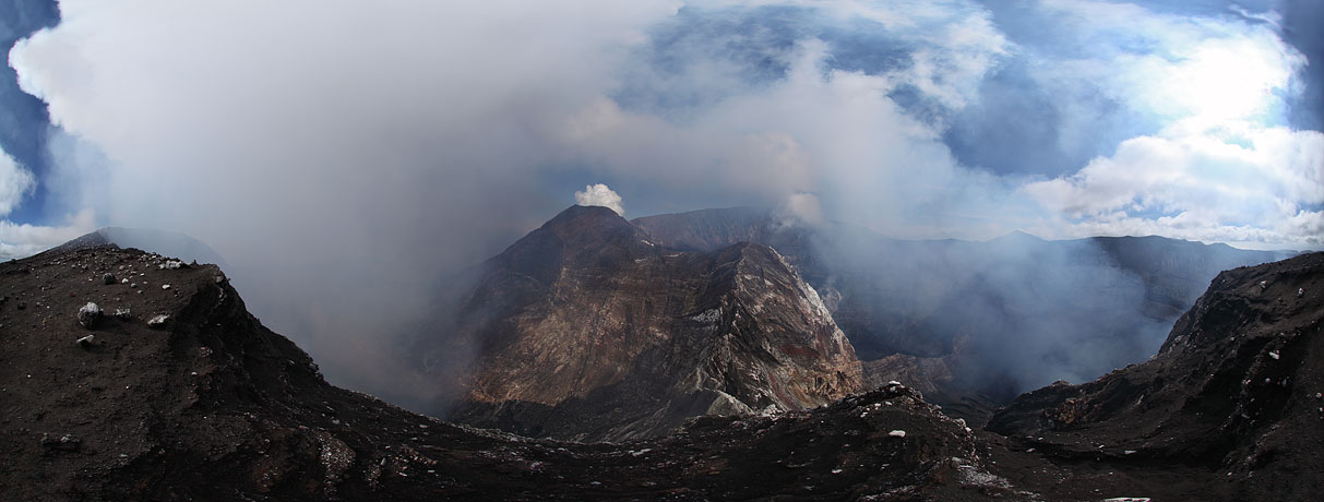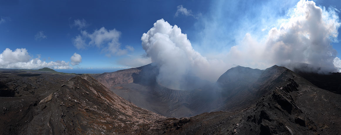 panoramic view, to the left S-crater, right main crater with lava lake inside |