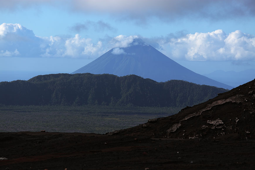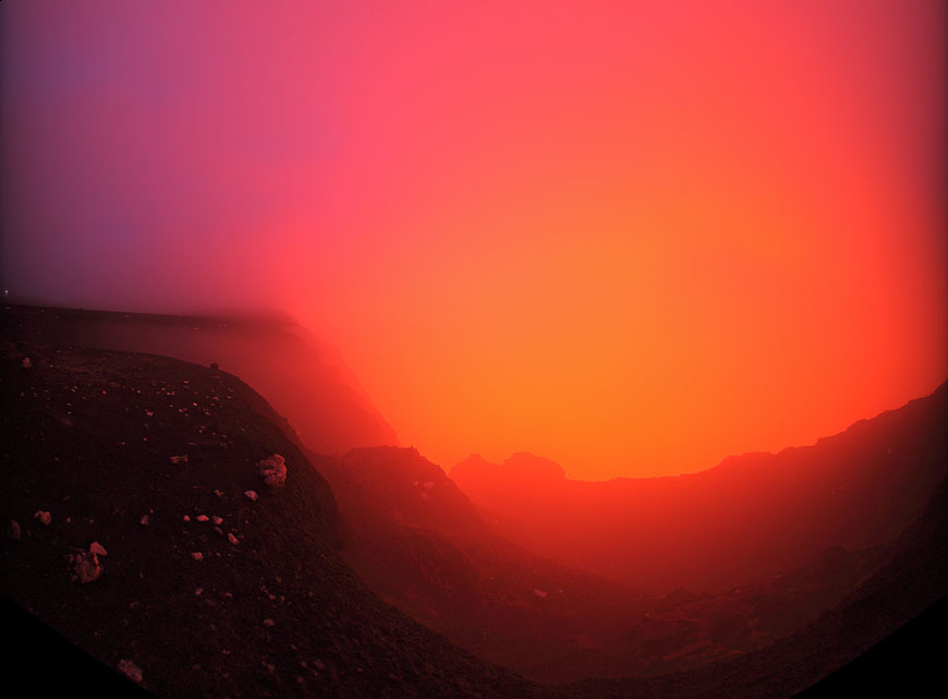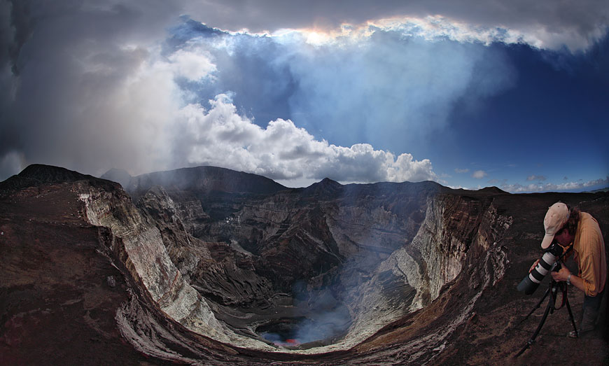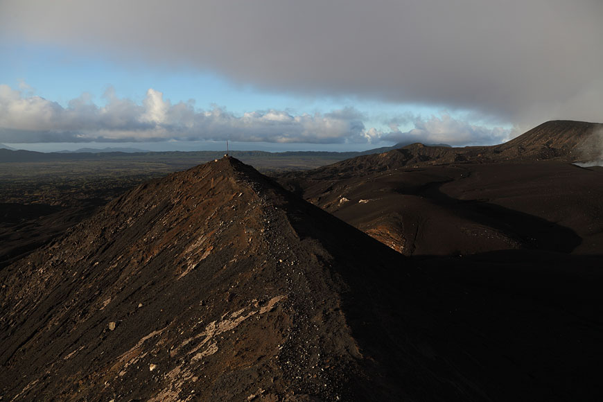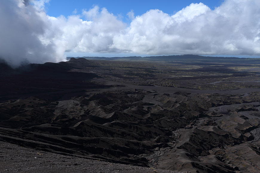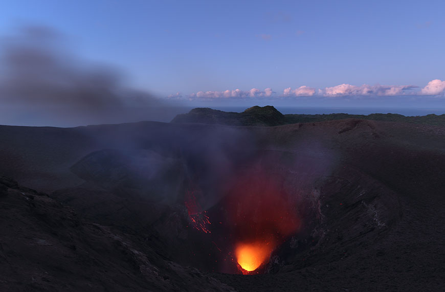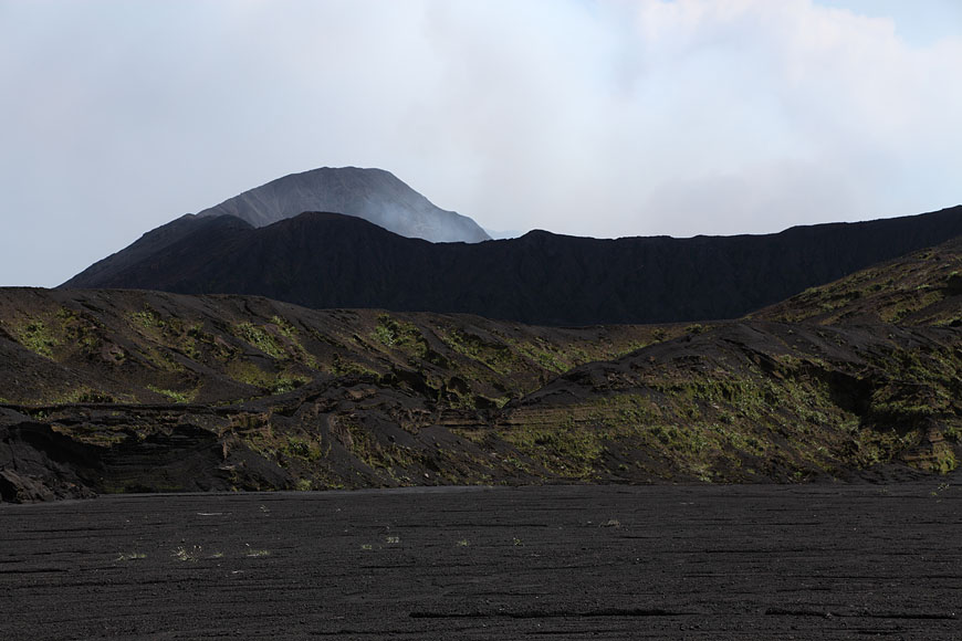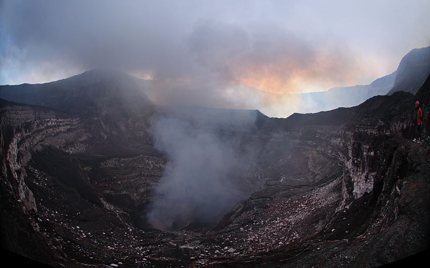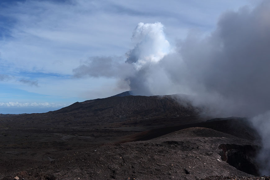 panoramic view, to the left S-crater, right main crater with lava lake inside |