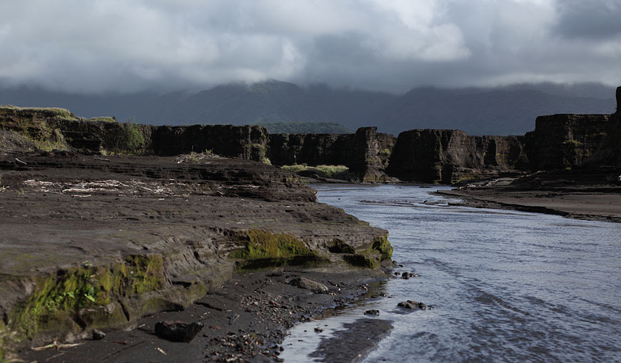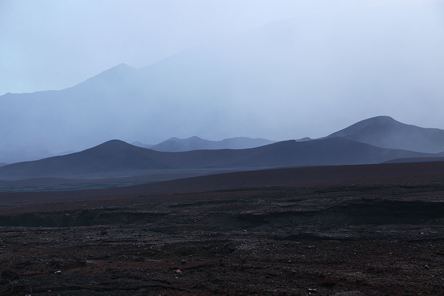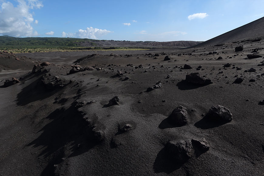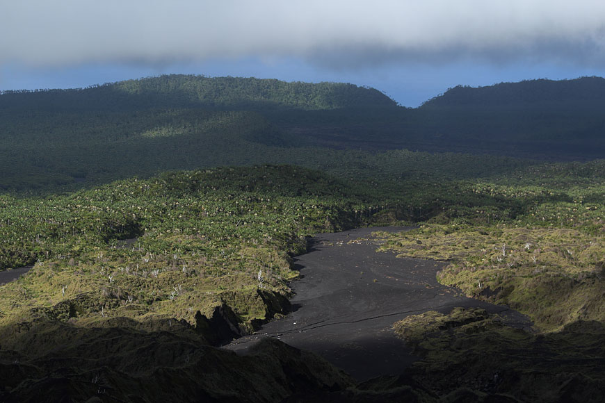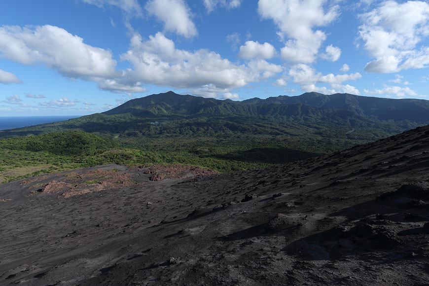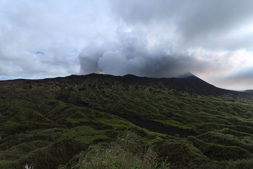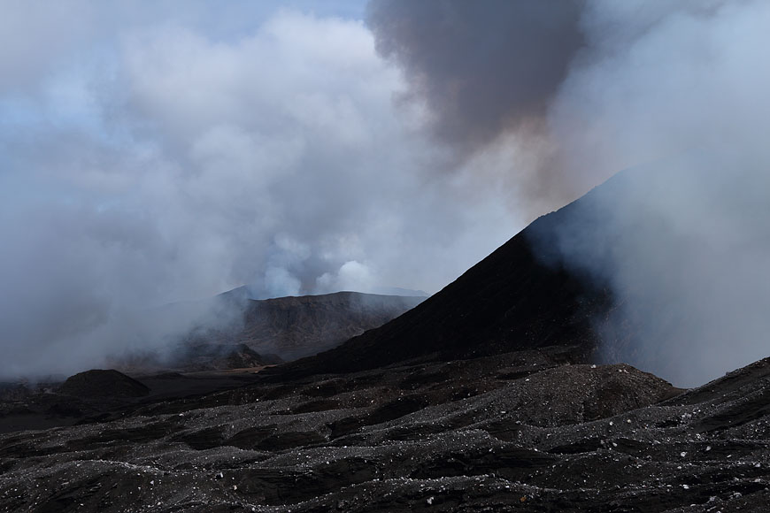 on the way to Benbow volcano, the landscape is submerged in gas cloud from Marum complex |