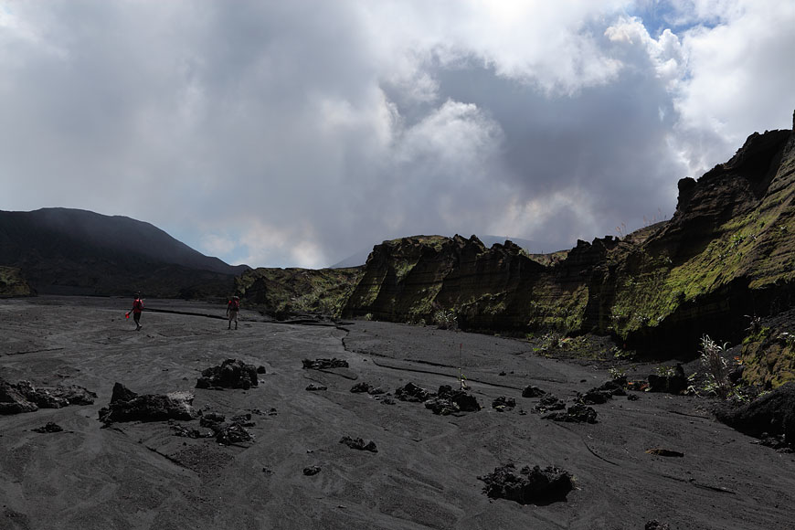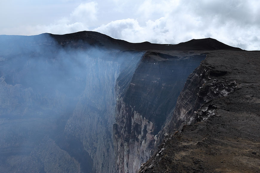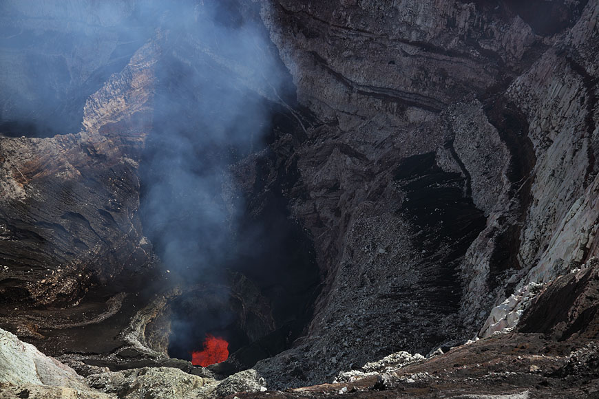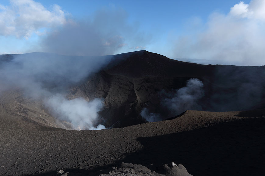 main crater of Benbow after climbing down, lava lake level is too low to be seen even from the inner rim |